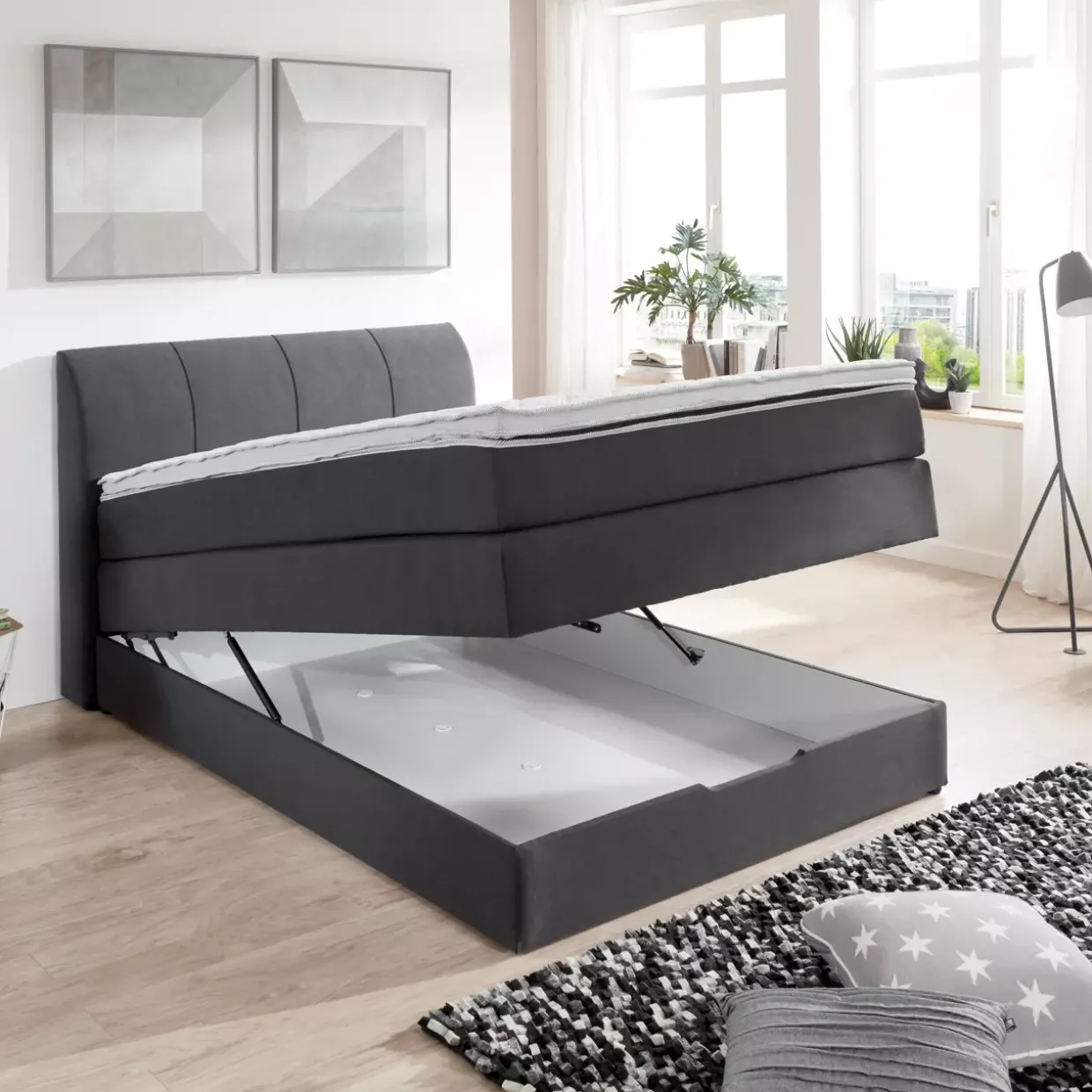 Ein stilvolles Boxspringbett in modernem Design vereint Ästhetik und Funktionalität. Die elegante Farbe Anthrazit passt sich harmonisch in jedes Schlafzimmerambiente ein und verleiht dem Raum eine ruhige Ausstrahlung. Gefertigt aus hochwertigem Stoff, bietet dieses Bett ein langanhaltendes und komfortables Schlaferlebnis. Der verwendete Polyester sorgt nicht nur für eine ansprechende Optik, sondern auch für eine besondere Langlebigkeit und Pflegeleichtigkeit des Materials.