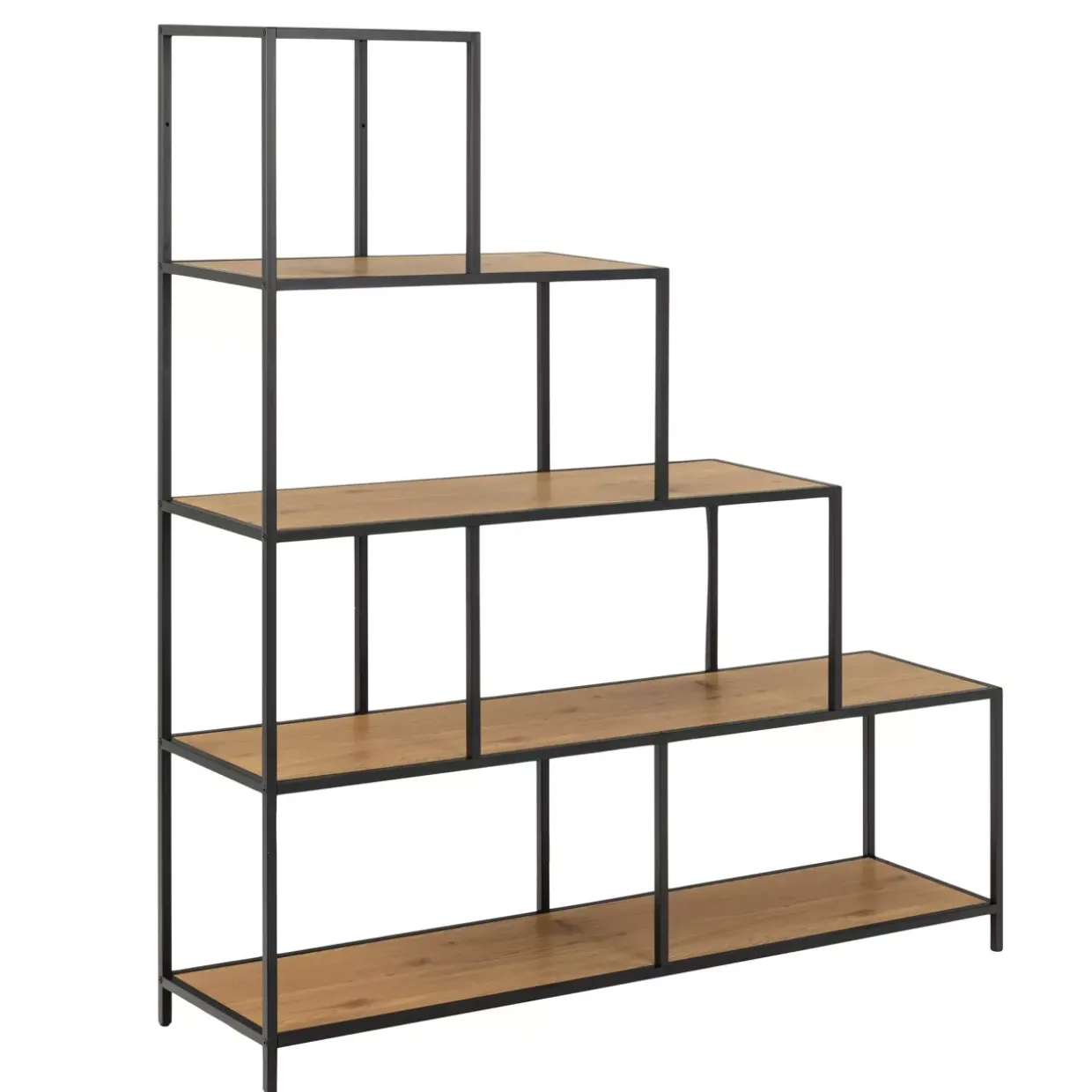 Mit einem modernen Stil zieht das Bücherregal Seaford in jeden Raum ein und setzt stilvolle Akzente. Die Kombination aus einer Wildeiche-Nachbildung und schwarzen Elementen verleiht diesem Möbelstück eine zeitlose Eleganz, die sich nahtlos in verschiedene Wohnkonzepte einfügt.