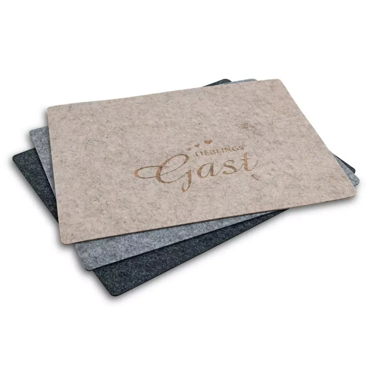 Filz, ein traditionelles Material, erfährt hier eine zeitgemäße Interpretation. Die sanfte, aber stabile Beschaffenheit des Filzes vermittelt ein Gefühl von Wärme und Komfort, das in der modernen Einrichtung oft gesucht wird. Ob bei einem gemütlichen Abendessen oder einem festlichen Anlass, diese Platzmatte ist ein unverzichtbares Element, das Eleganz und praktische Vorzüge nahtlos vereint.