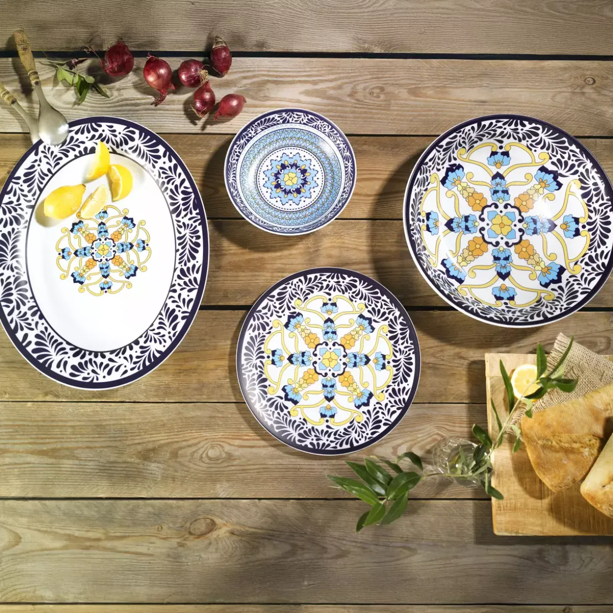 Ein beeindruckender Durchmesser von 28 cm macht diesen Teller zu einem idealen Begleiter für großzügige Mahlzeiten oder kunstvolle Tischarrangements. Die runde Form bringt Harmonie und Gleichgewicht auf Ihren Esstisch, während der mehrfarbig matte Look im Boho-Stil eine entspannte und dennoch stilvolle Atmosphäre schafft.
