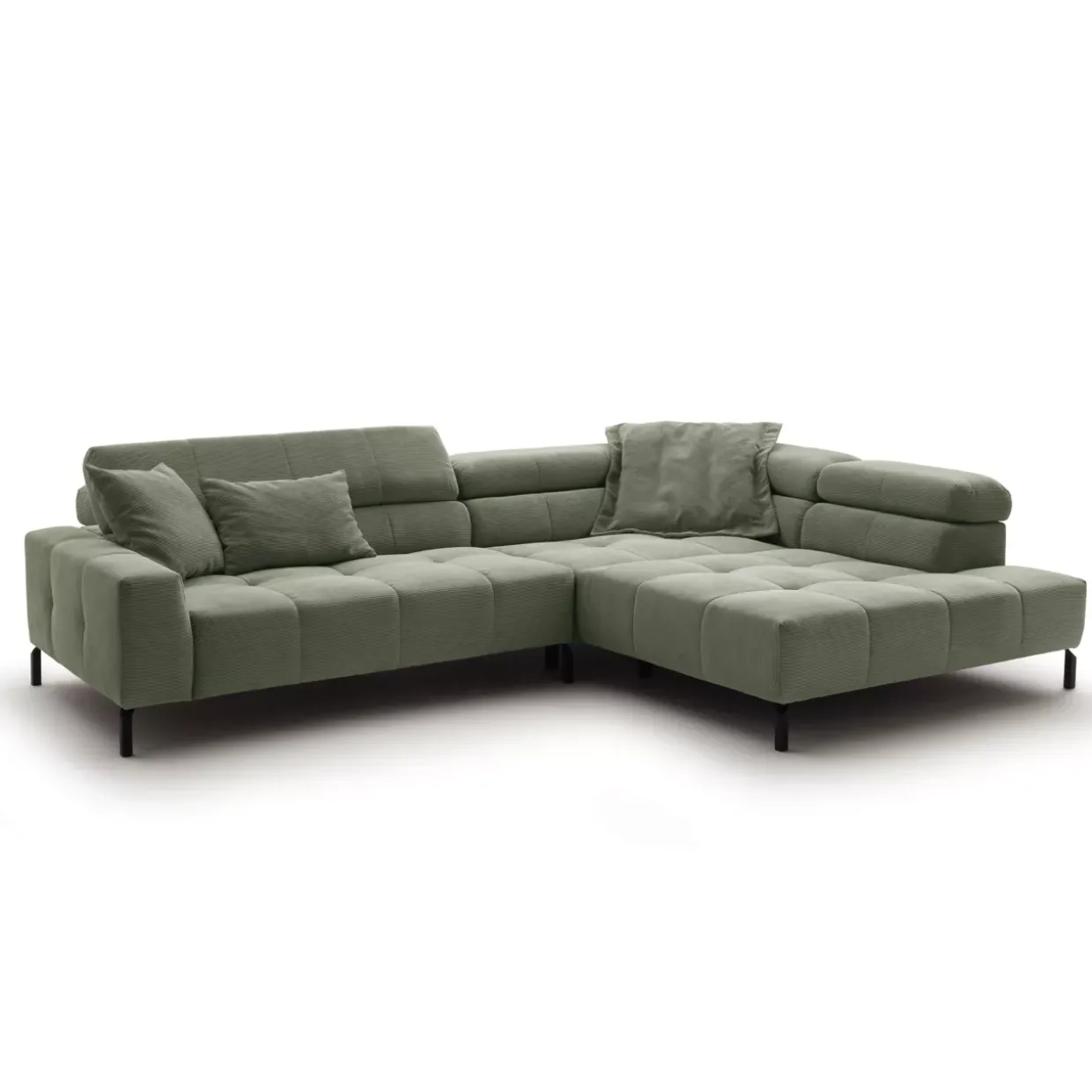 Ein Sitz aus PUR-Schaum, schichtweise aufgebaut in verschiedenen Stärken, bietet Ihnen unvergleichlichen Komfort bei der Cleveland Polstergarnitur. Diese moderne Garnitur vereint ästhetisches Design mit funktionalen Eigenschaften und passt sich mühelos in zeitgemäße Wohnräume ein. Der feine Cordbezug in oliv oder schwarz matt verleiht dem Möbelstück eine elegante Note und sorgt für eine angenehme Haptik.