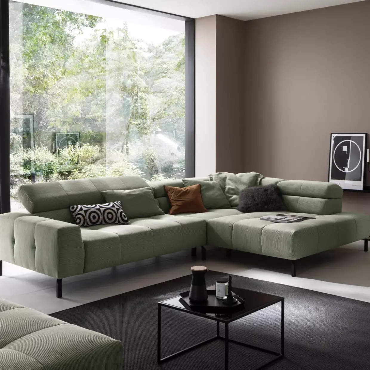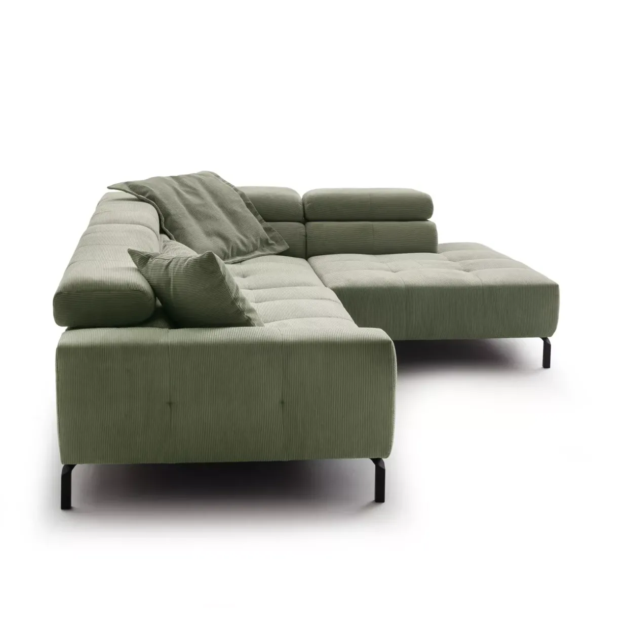 Ein weicher, legerer Polsteraufbau lädt zum Verweilen ein und schafft eine behagliche Atmosphäre. Die Umbauecke in großzügiger Ausführung, kombiniert mit der Kopfteilverstellung, ermöglicht es Ihnen, die Sitzposition individuell anzupassen und höchsten Komfort zu genießen. Der ergonomisch geformte Schaumstoff im Rückenbereich sorgt zudem für eine optimale Unterstützung Ihres Rückens.