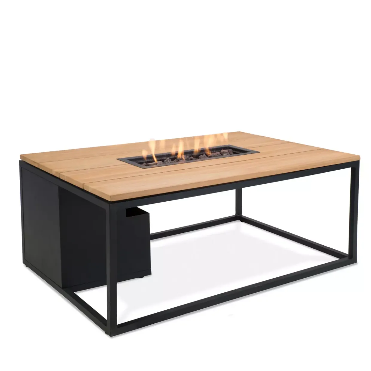 Die moderne Eleganz der Cosiloft-Serie verleiht jedem Außenbereich eine stilvolle Note. Mit einem schwarzen Aluminiumrahmen und einer Tischplatte aus edlem Teakholz fügt sich diese Feuerstelle harmonisch in jede Umgebung ein. Als perfekte Ergänzung für den Sommer gestaltet, bietet sie nicht nur optische Highlights, sondern auch funktionale Vorzüge.