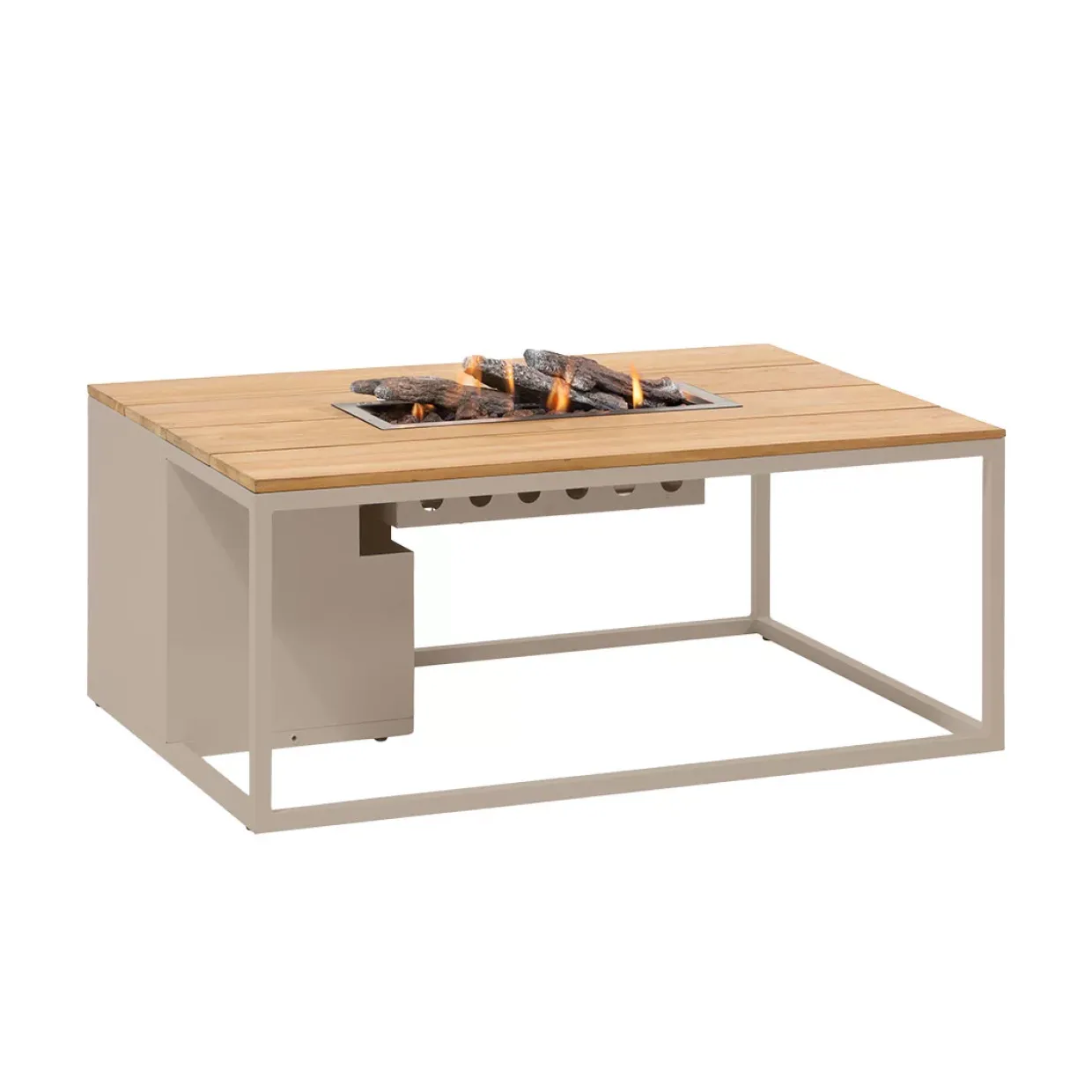 Ein Hauch von Modernität trifft auf natürlichen Charme. Der Cosiloft, ein stilvoller Grill und eine Feuerstelle, vereint das edle Teakholz mit einem robusten Aluminiumrahmen in einem ansprechenden sandy beige. Diese harmonische Kombination eignet sich perfekt für entspannte Sommerabende im Freien.