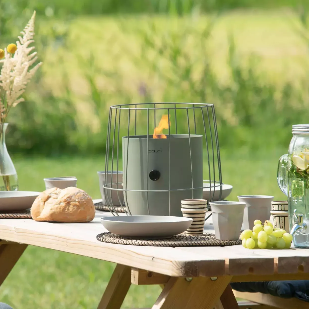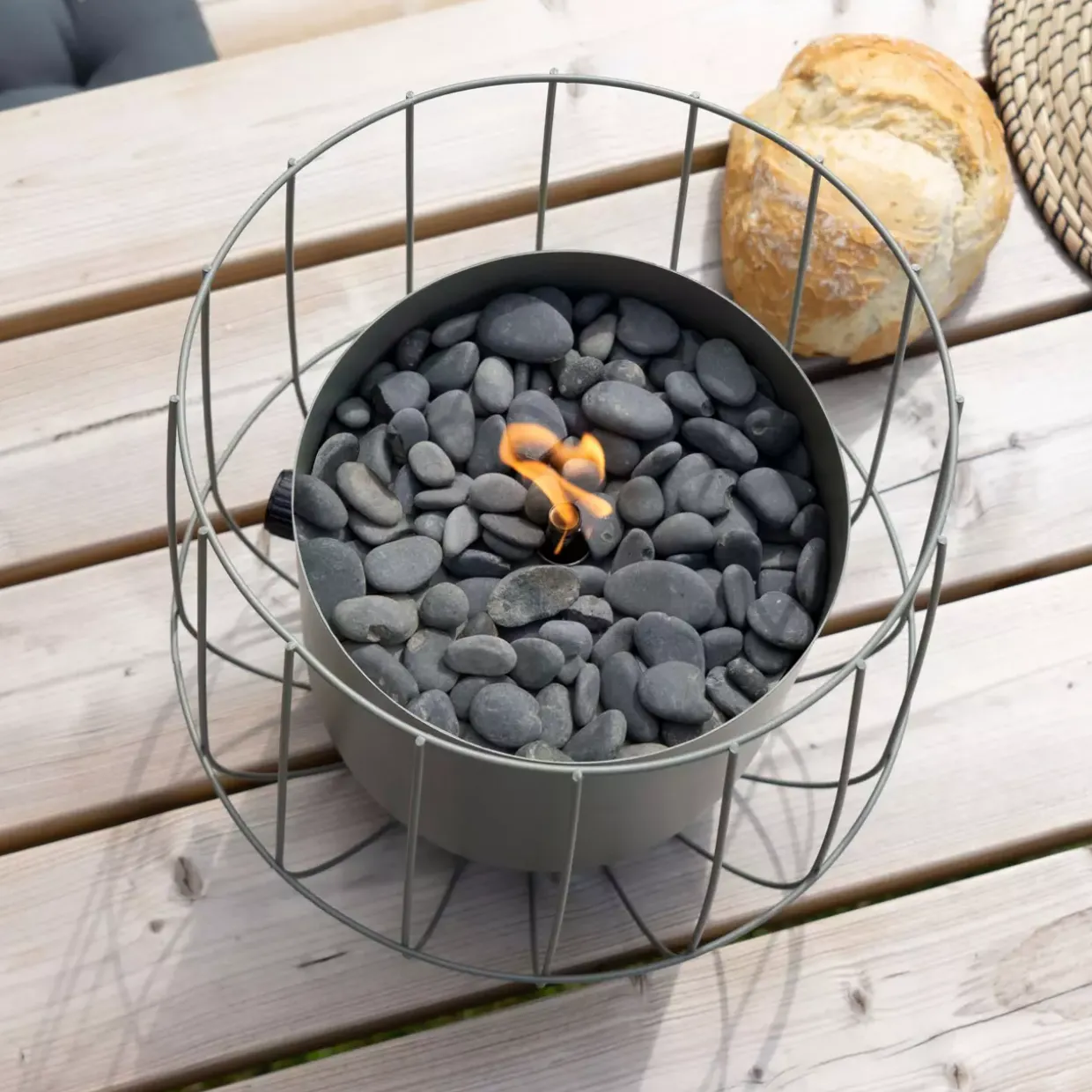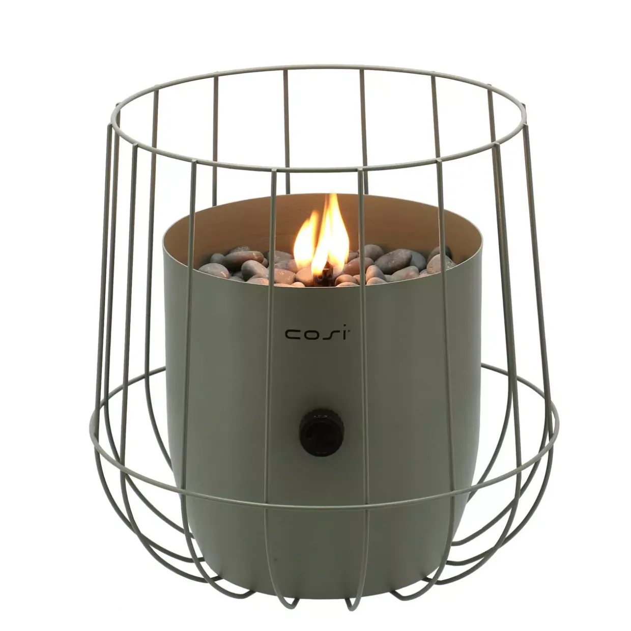 Mit einem eleganten Durchmesser von 31 cm präsentiert sich die Cosiscoop Basket Gaslaterne im modernen Stil. Die harmonische Farbe Olive fügt sich nahtlos in jede sommerliche Umgebung ein und verleiht Ihrem Außenbereich eine stilvolle Note. Gefertigt aus robustem Metall und edlem Stein, bietet dieses Modell nicht nur ästhetische Anziehungskraft, sondern auch zuverlässige Beständigkeit.Besonders bemerkenswert ist die Ausstattung mit dekorativen Kieselsteinen, die dem Design eine natürliche Note verleihen. Die Gaslaterne wird mit Propan- oder Butangas betrieben und zeichnet sich durch einen Brennstoffverbrauch von maximal 30 Gramm pro Stunde aus. Die Wärmekapazität von 0,4 kW sorgt für eine sanfte und angenehme Wärme, die eine Atmosphäre der Gemütlichkeit schafft.Mit einer Brenndauer von 5 bis 6 Stunden bei Verwendung einer 190-Gramm-Gaskartusche, bietet die Cosiscoop Basket ausreichend Licht für lange Sommerabende. Die einfache Handhabung wird durch das leichte Anzünden mit einem langen Feuerzeug ermöglicht. Diese Gaslaterne ist somit nicht nur ein ästhetisches Highlight, sondern auch ein funktionaler Begleiter für entspannte Stunden im Freien. Pflegeleicht und stilvoll, ist sie die perfekte Ergänzung für moderne Außenbereiche.