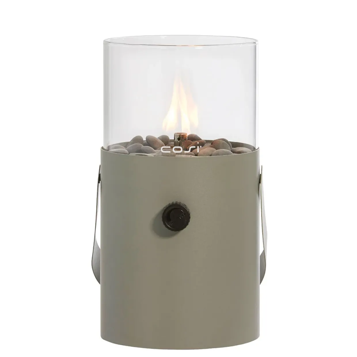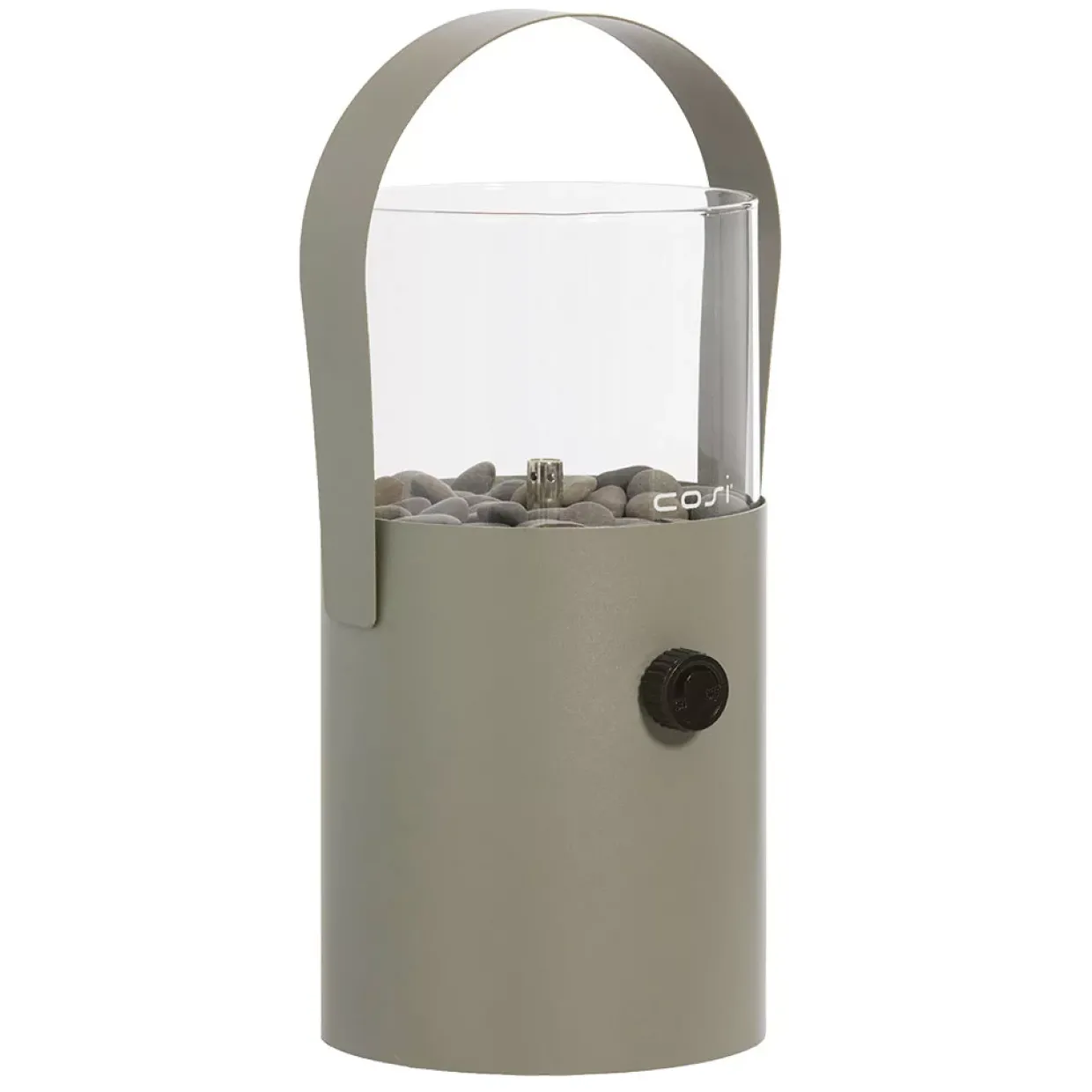 Die Gaslaterne Cosiscoop beeindruckt mit ihrem modernen Stil und der eleganten Farbe Original olive. Diese ästhetische Ergänzung für Ihren Außenbereich vereint hochwertiges Glas, robustes Metall und stilvolle Steine. Genießen Sie laue Sommerabende in einem sanften Licht, das durch die inkludierten Glas- und Kieselsteine stimmungsvoll gebrochen wird.