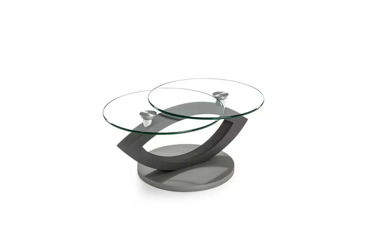 Innovative Gestaltung mit Klarglas sorgt für eine luftige und helle Atmosphäre in Ihrem Wohnzimmer. Die doppelte Glasfläche gewährt genug Platz für Dekoration, Zeitschriften oder Ihre Lieblingsbücher, während die anthrazitfarbenen Akzente für einen Hauch von Luxus sorgen.