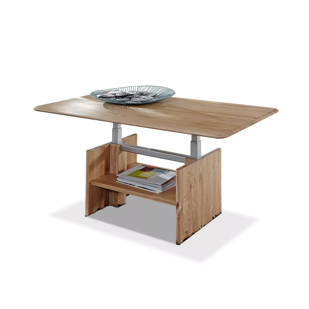 Ein Hauch von Eleganz entfaltet sich mit dem modernen Abando Couchtisch in europäischer Wildeiche. Die natürliche Schönheit des Holzes bringt Wärme und Stil in jeden Wohnraum. Der Tisch vereint ästhetisches Design mit praktischer Funktionalität, indem er höhenverstellbar ist. Diese Flexibilität ermöglicht es Ihnen, den Tisch individuell an Ihre Bedürfnisse anzupassen, sei es für einen geselligen Abend mit Freunden oder ein entspanntes Frühstück am Wochenende.