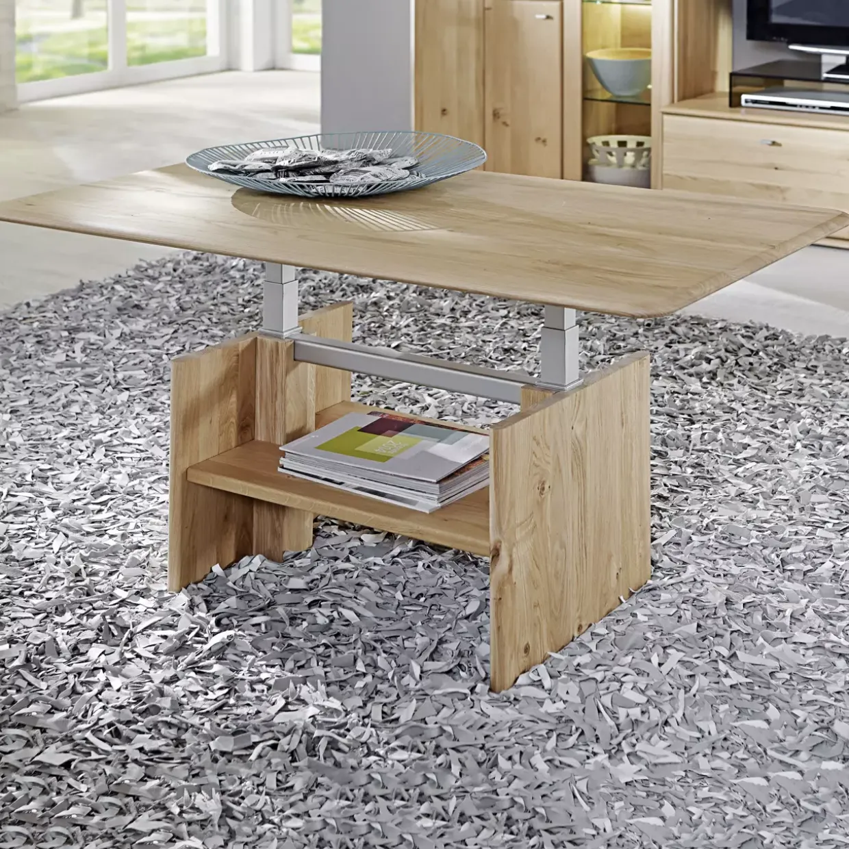 Besonders hervorzuheben ist die Höhenverstellbarkeit, die Ihnen zusätzlichen Komfort und Funktionalität bietet. Diese Eigenschaft macht den Tisch zu einem flexiblen Begleiter im Alltag, der sich leicht an unterschiedliche Situationen anpassen lässt. Ob als zentraler Treffpunkt im Wohnzimmer oder als stilvolles Dekorationselement in Ihrem Zuhause – der Abando Couchtisch überzeugt durch seinen einzigartigen Charakter und seine Vielseitigkeit. Genießen Sie die Verbindung von Natur und Design in Ihrem Wohnbereich.