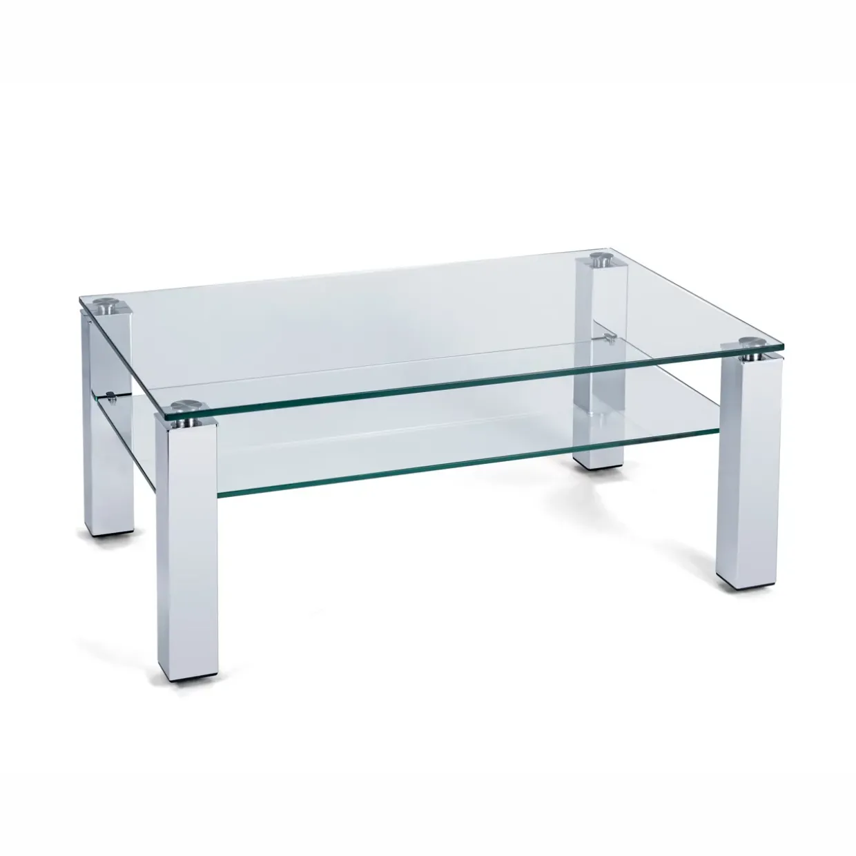 Ein elegantes 4-Fußgestell aus Chrom Hochglanz verleiht dem Couchtisch Denver eine moderne Anmutung. Die klare Glasoberfläche, gefertigt aus robustem Klarglas mit einer Stärke von 12 mm, bietet ein stilvolles Ambiente und lässt Licht frei in den Raum strömen. Rechteckig in seiner Form, fügt sich dieser Tisch harmonisch in moderne Wohnräume ein und ergänzt das Interieur durch seine schlichte Eleganz.