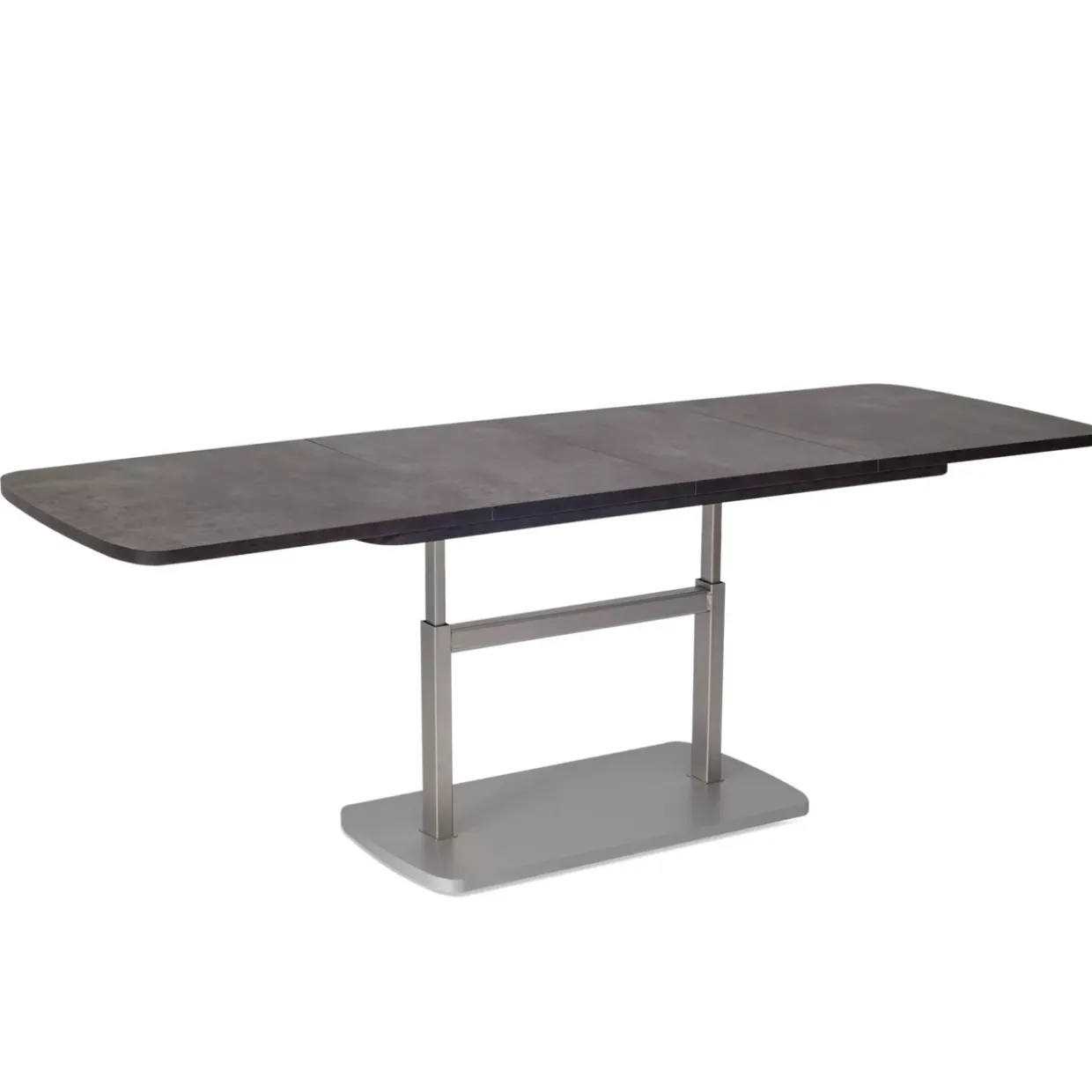 Betonoptik dunkel verleiht diesem modernen Couchtisch eine markante Ausstrahlung, die in jedem Wohnzimmer Akzente setzt. Die raffinierte Kombination aus Holzwerkstoff und Metall sorgt für Stabilität und Langlebigkeit. Ein besonderes Highlight ist die Synchro-Slice-Auszugsmechanik, die es ermöglicht, die Tischfläche zweifach längs auf beeindruckende 145/180 x 63 cm zu erweitern. Diese Funktion bietet Flexibilität bei der Nutzung, sei es für gesellige Abende oder als praktische Ablagefläche.