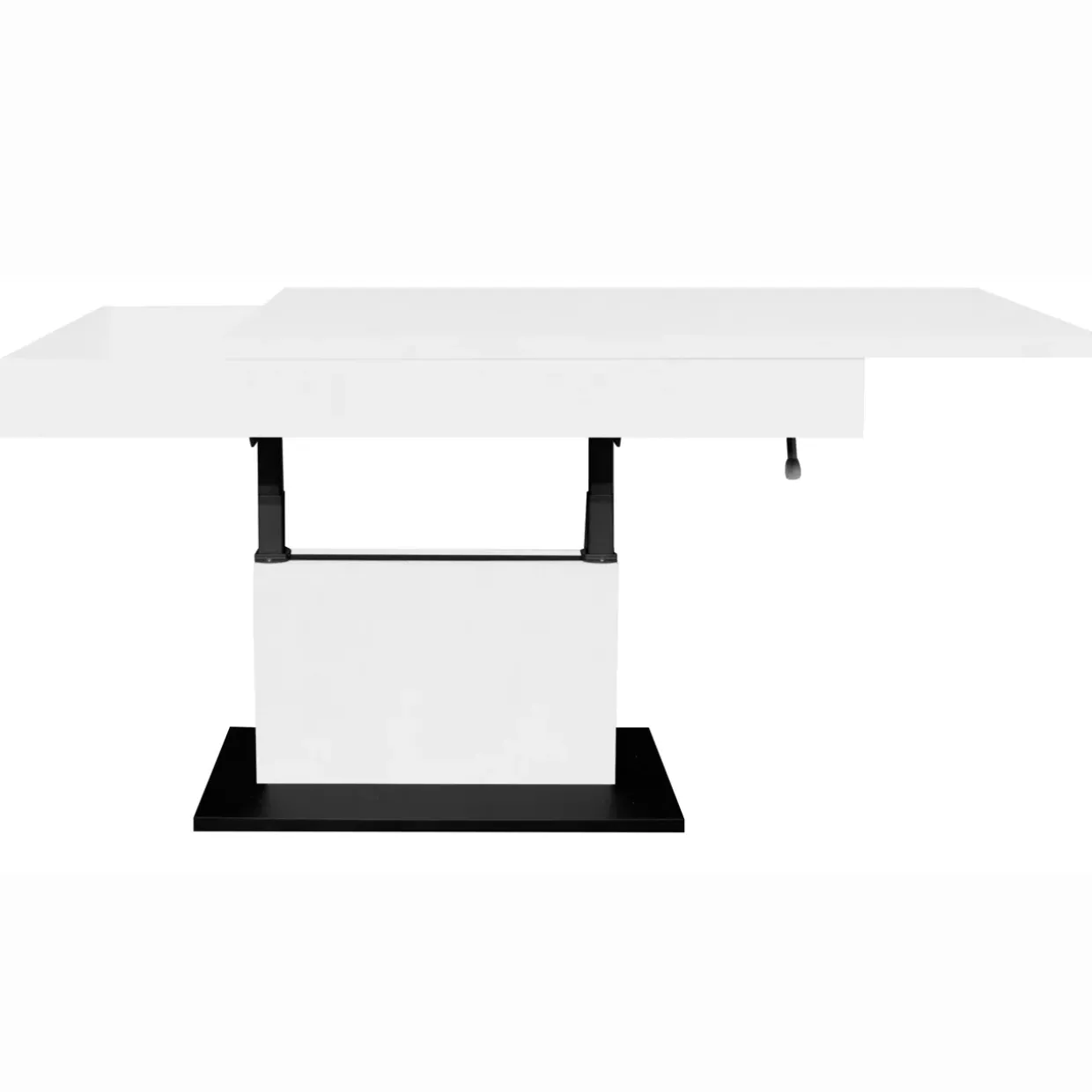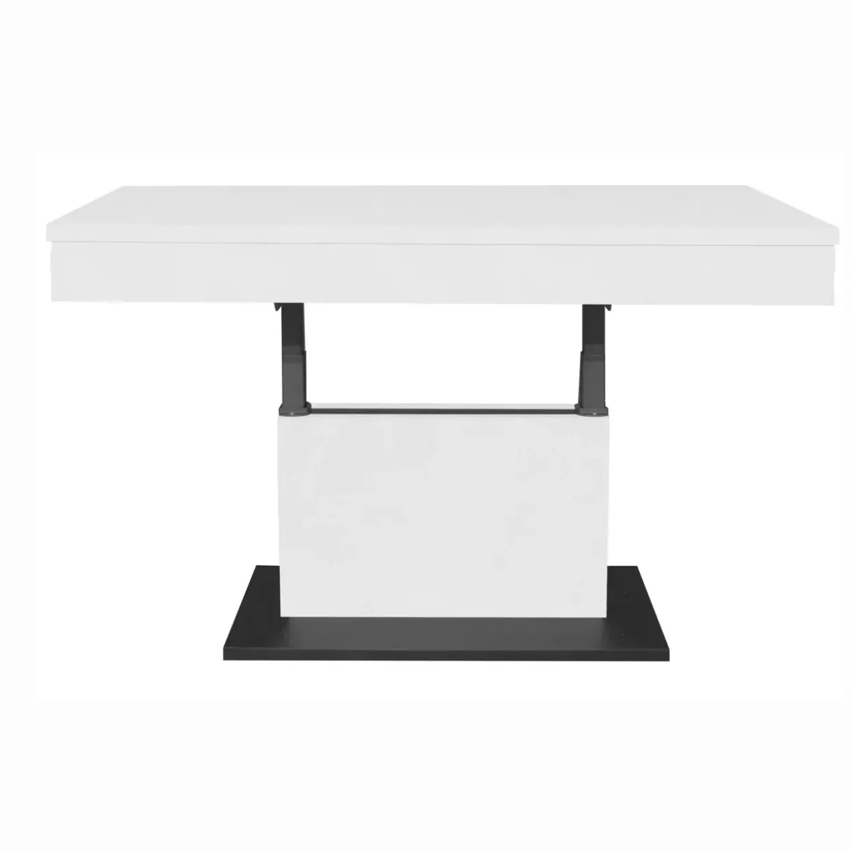 Die Eleganz eines Couchtisches wird durch seine moderne Form unterstrichen. Mit einer melaminharzbeschichteten Oberfläche in den stilvollen Farbvarianten Ice White Supermatt und Vulkanschwarz Supermatt fügt sich dieses Möbelstück nahtlos in jedes zeitgenössische Wohnumfeld ein. Flexibilität ist hier das Stichwort: Dank der innovativen Liftfunktion lässt sich die Höhe zwischen 59 und 77 cm individuell anpassen, was Ihnen eine Vielzahl von Nutzungsmöglichkeiten eröffnet.