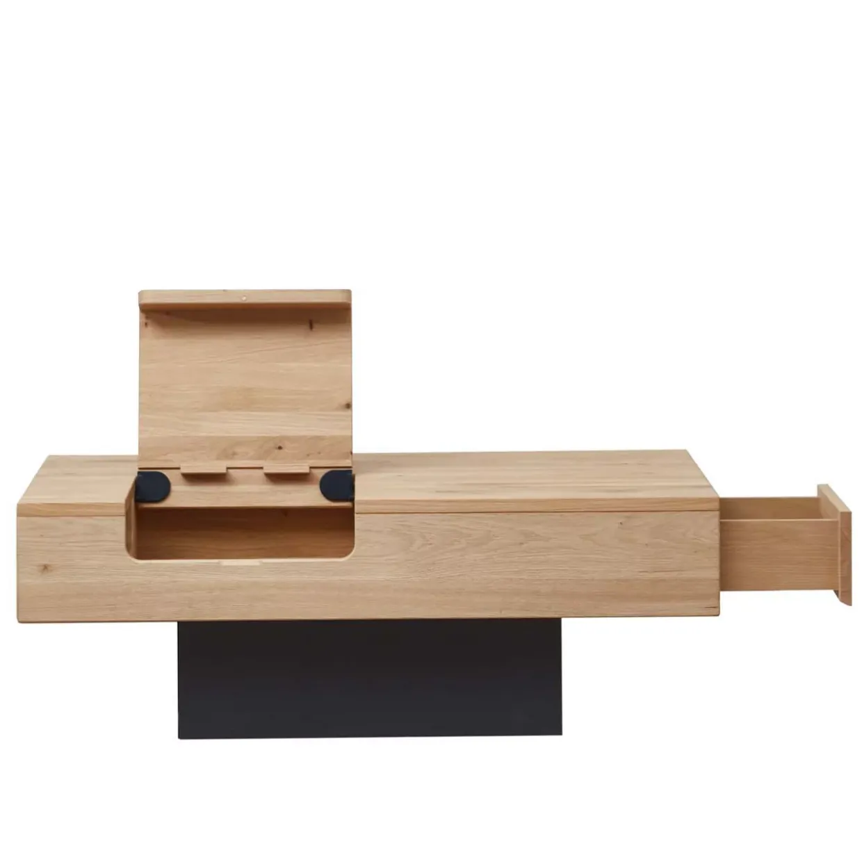 Der Olbia Couchtisch verleiht jedem modernen Wohnzimmer eine besondere Note. Die Kombination aus massiver Wildeiche und cubanitfarbener Steinplatte schafft ein harmonisches und stilvolles Ambiente. Dank der pulverbeschichteten Oberfläche ist der Tisch nicht nur pflegeleicht, sondern auch besonders widerstandsfähig.