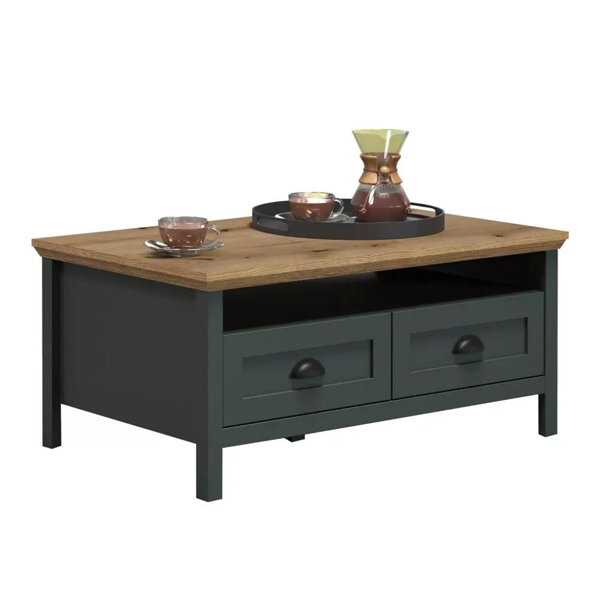 Entdecken Sie die Serie Stanton. Der Couchtisch ist in einem ansprechenden Tannengrün Dekor gehalten, das eine angenehme Ruhe ausstrahlt und