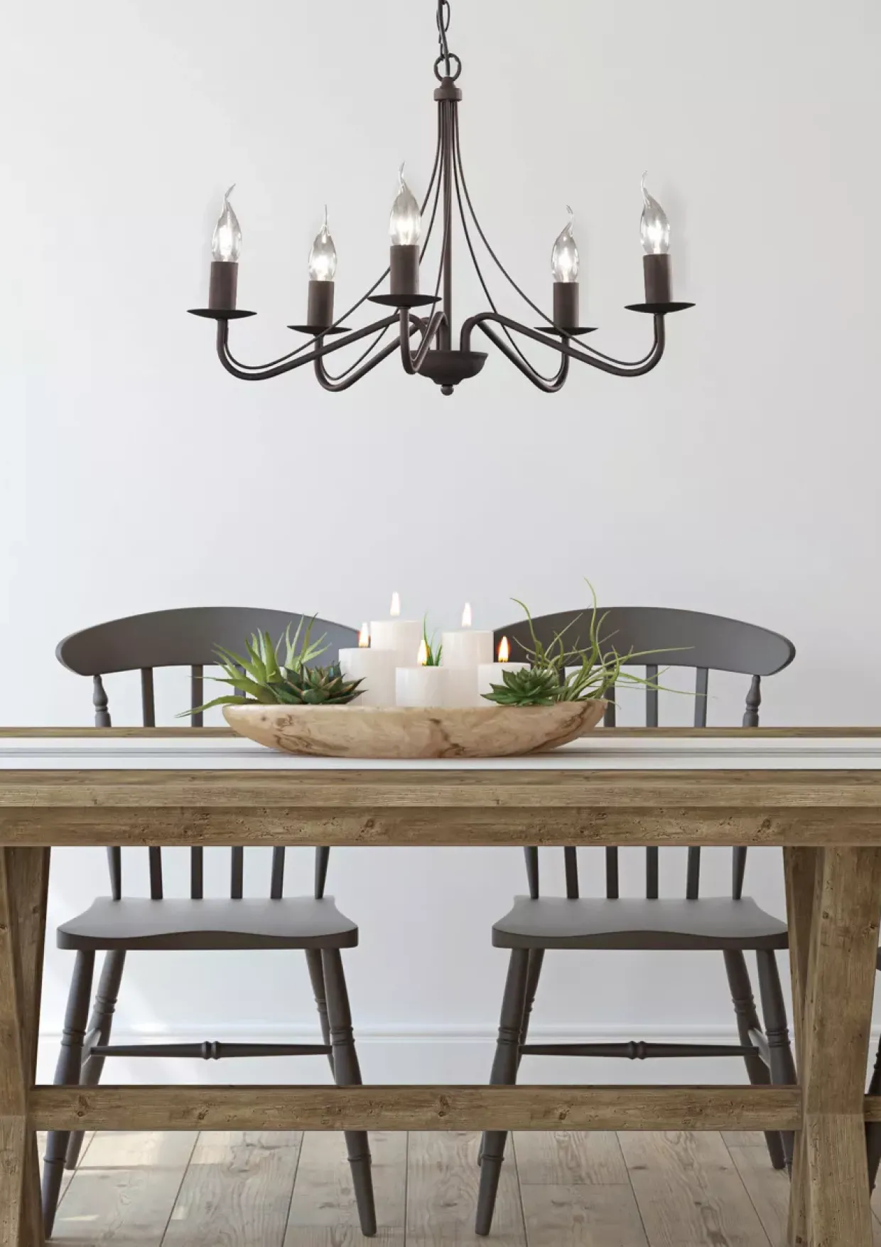 Die dekorative Krone COUNTRY bringt ein wenig Landhausflair in Ihr zu Hause. Das geschwungene Design macht sie zu einem schönen Dekorationselement das sich auch mit vielen klassischen Einrichtungsstilen kombinieren lässt. Die Krone hat einen Durchmesser von 55cm und eine maximale Höhe von 172 cm. Die rostfarbige Gestaltung unterstützt das Design der Leuchte und lässt sich gut mit vorhandenem Interieur kombinieren. Für eine energiesparende Beleuchtung empfiehlt sich die Verwendung eines LED Leuchtmittels. Diese sind eine optimale Alternative zu herkömmlichen Halogen Leuchtmitteln und stehen für eine hohe Lichtqualität und eine Energieeinsparung von bis zu 80%. Zusätzlich profitieren Sie bei LED Leuchtmitteln von einer langen Lebensdauer, einer geringen Wärmeentwicklung und schonen gleichzeitig die Umwelt.