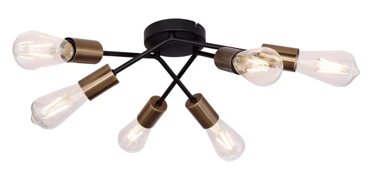 Deckenleuchte Metall schwarz, altmessing, ohne Schirm, ø: 545mm, H: 145mm, exkl. 6x E27 60W 230V