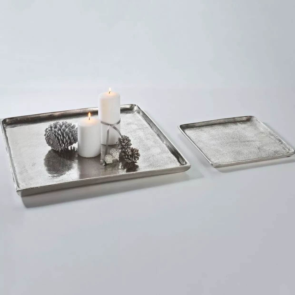 Quadratisch und elegant präsentiert sich dieser Dekoteller in einem modernen Stil. Die matte silberne Farbe verleiht dem Produkt einen zeitlosen und zugleich stilvollen Charakter, der sich nahtlos in verschiedenste Wohnkonzepte einfügt. Gefertigt aus hochwertigem Aluminium, bietet er nicht nur eine ansprechende Optik, sondern auch eine langlebige und robuste Struktur.