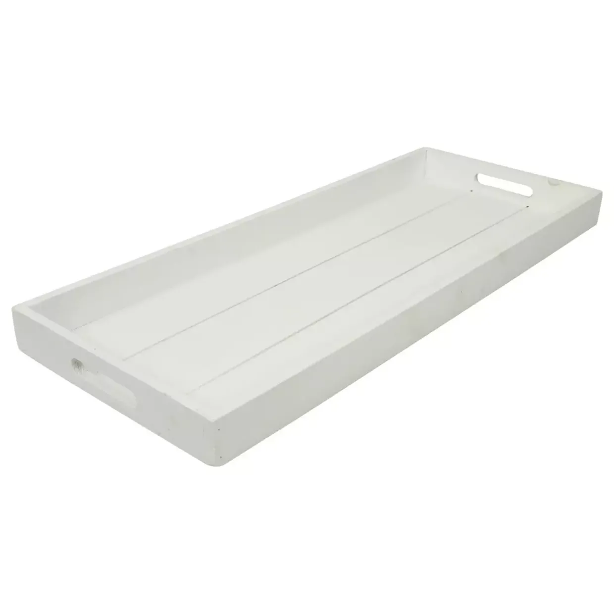 Ein Hauch von Modernität prägt dieses elegante Tablett. In schlichtem Weiß gehalten, fügt es sich nahtlos in jedes Interieur ein und bietet eine dezente, aber stilvolle Ergänzung für Ihre Einrichtung. Gefertigt aus hochwertigem Holz, verspricht es Robustheit und Langlebigkeit, ohne dabei an Ästhetik einzubüßen.
