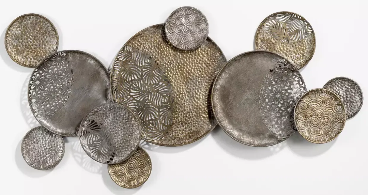 Besonders in gut beleuchteten Räumen entfaltet die goldene Oberfläche ihre volle Wirkung, indem sie das Licht reflektiert und für eine warme Atmosphäre sorgt. Diese Art von Dekoration eignet sich hervorragend, um einem Raum Tiefe und Charakter zu verleihen, ohne aufdringlich zu wirken. Mit einem Deko-Wandobjekt aus Metall schaffen Sie eine stilvolle und anspruchsvolle Umgebung, die Ihre persönliche Note unterstreicht. Ein solches Design-Element ist eine Investition in Ästhetik und Stil, die Ihnen und Ihren Gästen Freude bereiten wird.