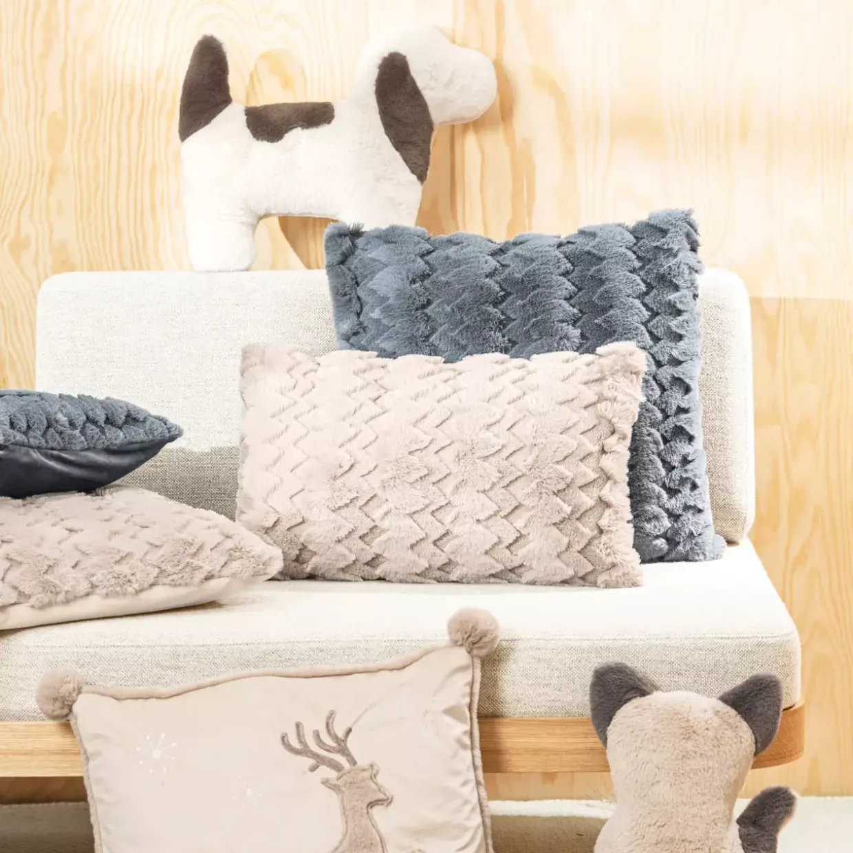 In einem modernen Stil gestaltet, fügt sich das Formkissen Hund harmonisch in jedes Zuhause ein. Die naturfarbene Gestaltung sorgt für eine warme und einladende Atmosphäre, die das ganze Jahr über für Gemütlichkeit sorgt. Die hochwertige Synthetikfaser macht das Kissen nicht nur robust, sondern auch angenehm weich, was es zu einem idealen Begleiter auf dem Sofa oder im Bett macht.