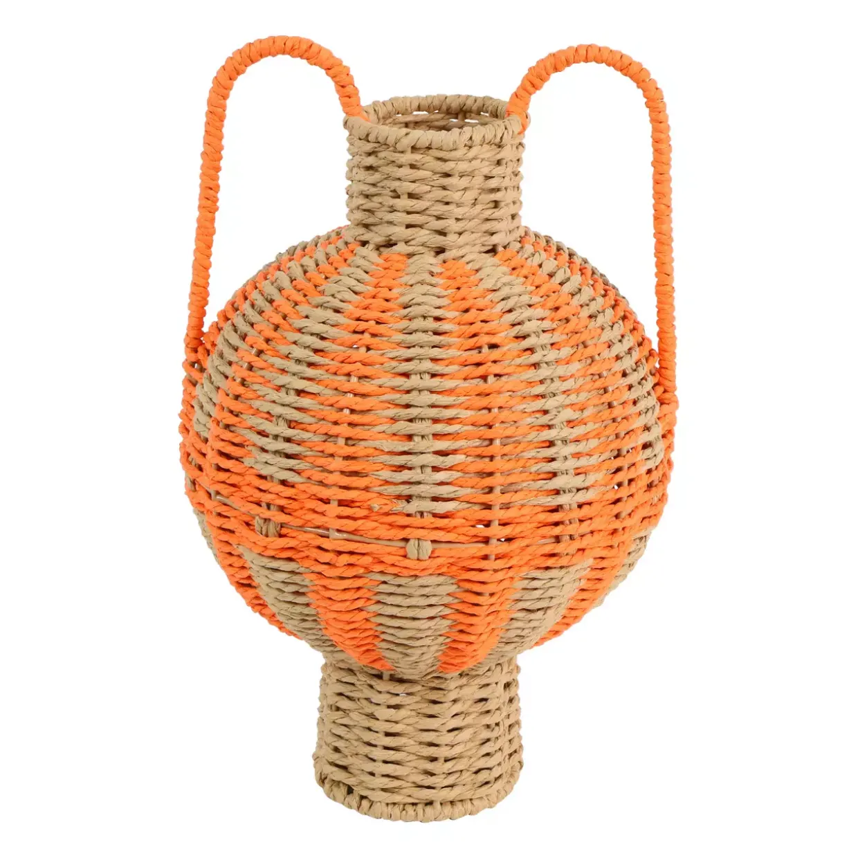 Ein Blickfang in orange-natur: Diese Vase besticht durch ihren konventionellen Stil und bringt natürliche Eleganz in Ihr Zuhause. Die Kombination aus warmen Farbtönen und Naturmaterialien verleiht dem Raum eine harmonische Atmosphäre. Mit ihrem besonderen Material aus Seil erweist sich die Vase nicht nur als Dekorationsobjekt, sondern auch als Ausdruck nachhaltigen Designs.