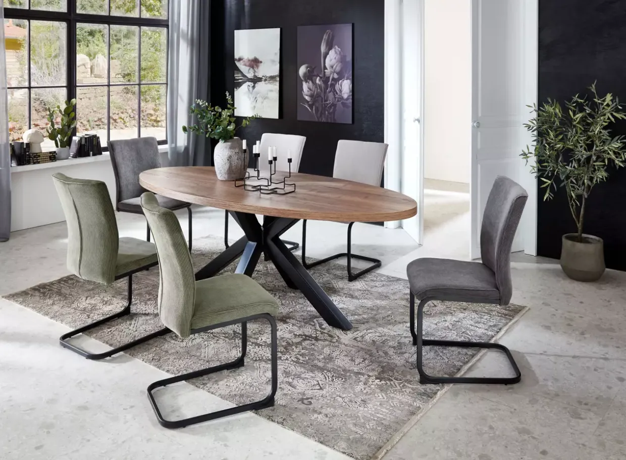 Das Modell Menu besticht durch seine raffinierte Konstruktion, die auf einem stabilen Sternfuß ruht. Diese Base verleiht dem Tisch nicht nur Stabilität, sondern auch eine ansprechende optische Leichtigkeit. Die hochwertigen Materialien wie Metall und Holzwerkstoff versprechen Langlebigkeit und Pflegeleichtigkeit – ideal für den täglichen Gebrauch und besondere Anlässe gleichermaßen.