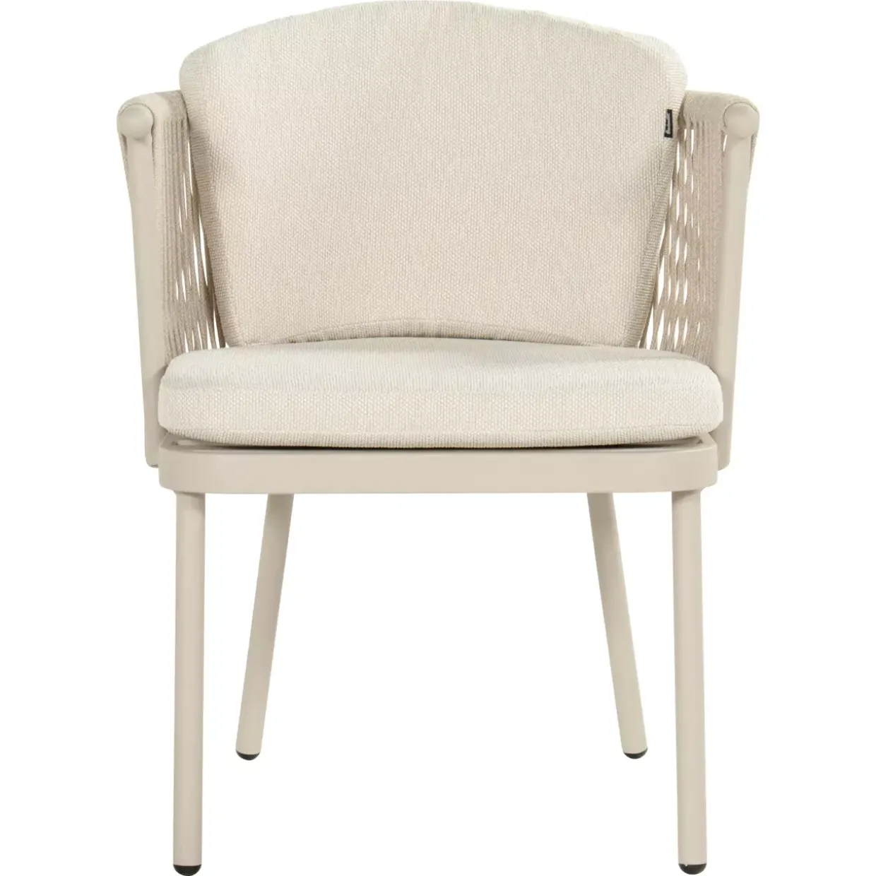 Ein Hauch von Eleganz: Der Toledo Dining Sessel besticht durch seinen einzigartigen Cottage-Stil und fügt sich harmonisch in jede Umgebung ein. Die sanfte Beige-Tönung des Sessels verleiht jedem Raum eine warme und einladende Atmosphäre. Stabilität und Leichtigkeit vereinen sich im soliden 4-Fußgestell aus hochwertigem Aluminium. Dieses Material sorgt nicht nur für Robustheit, sondern auch für ein geringes Gewicht, was den Sessel leicht umplatzierbar macht. Der Einsatz von Textilmaterial bietet zudem ein angenehmes Sitzgefühl und ergänzt das edle Design.Ein besonderes Highlight ist die Rückenlehne, die aus Olefin Rope gefertigt ist. Dieses Material bietet nicht nur hohen Komfort, sondern auch eine stilvolle Optik, die den Sessel zu einem Blickfang macht. Um den Sitzkomfort noch weiter zu steigern, sind Kissen inklusive, die sich perfekt an die Körperform anpassen.Der Toledo Dining Sessel vereint Funktionalität und Ästhetik auf höchstem Niveau. Ob im Wohnzimmer, Esszimmer oder Wintergarten – dieser Sessel ist eine hervorragende Wahl für alle, die Wert auf Qualität und Design legen. Lassen Sie sich von der Kombination aus Metall und Textil inspirieren und genießen Sie entspannte Stunden in stilvollem Ambiente.
