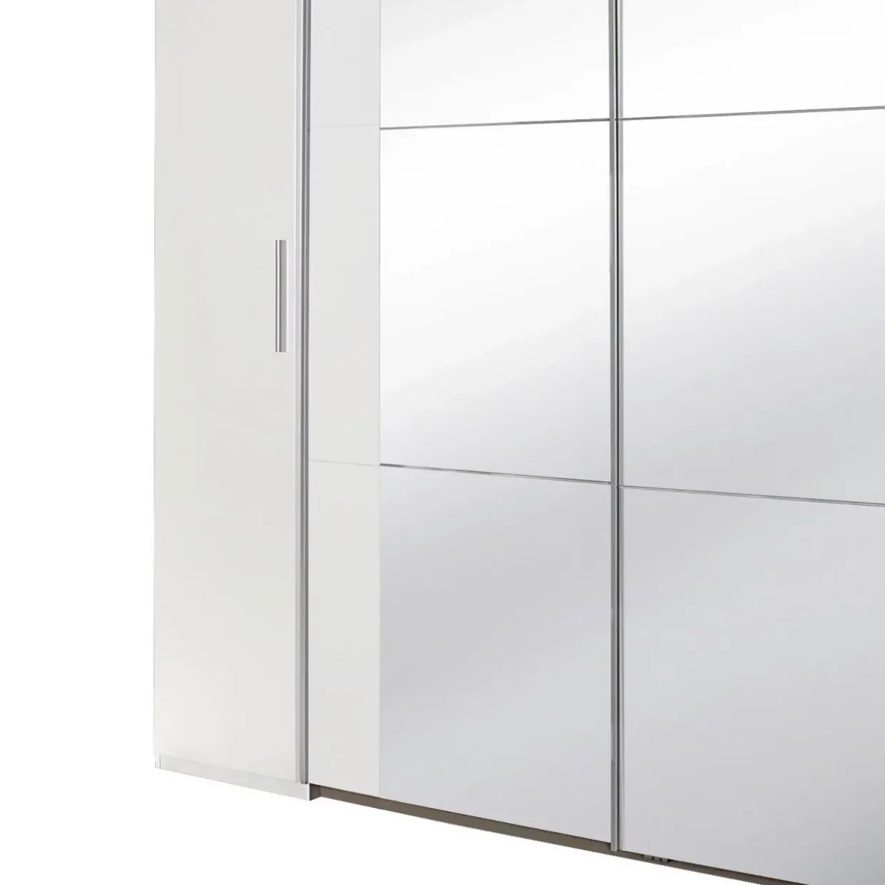 Zwei elegante Spiegel sind das Herzstück dieses modernen Schranks, der jedes Schlafzimmer stilvoll bereichert. Die schlichte Farbgebung in Weiß sorgt für eine zeitlose und klare Optik, die sich harmonisch in verschiedene Raumkonzepte einfügt. Gefertigt aus hochwertigem Holzwerkstoff, bietet dieser Schrank nicht nur eine ansprechende Ästhetik, sondern auch eine robuste und langlebige Struktur.