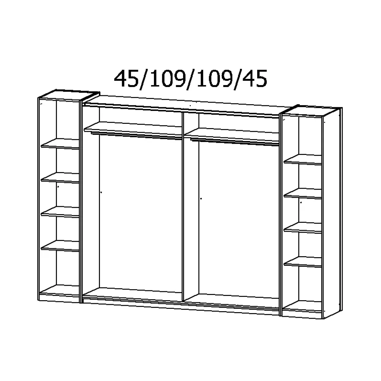 Drehtüren sind ein klassisches Element, das in diesem Design geschickt umgesetzt wurde. Sie ermöglichen einen einfachen Zugang zu Ihrem Hab und Gut und tragen zur eleganten Erscheinung des Schranks bei. Der Kronach sorgt für eine geordnete und stilvolle Aufbewahrung Ihrer Kleidung und Accessoires.