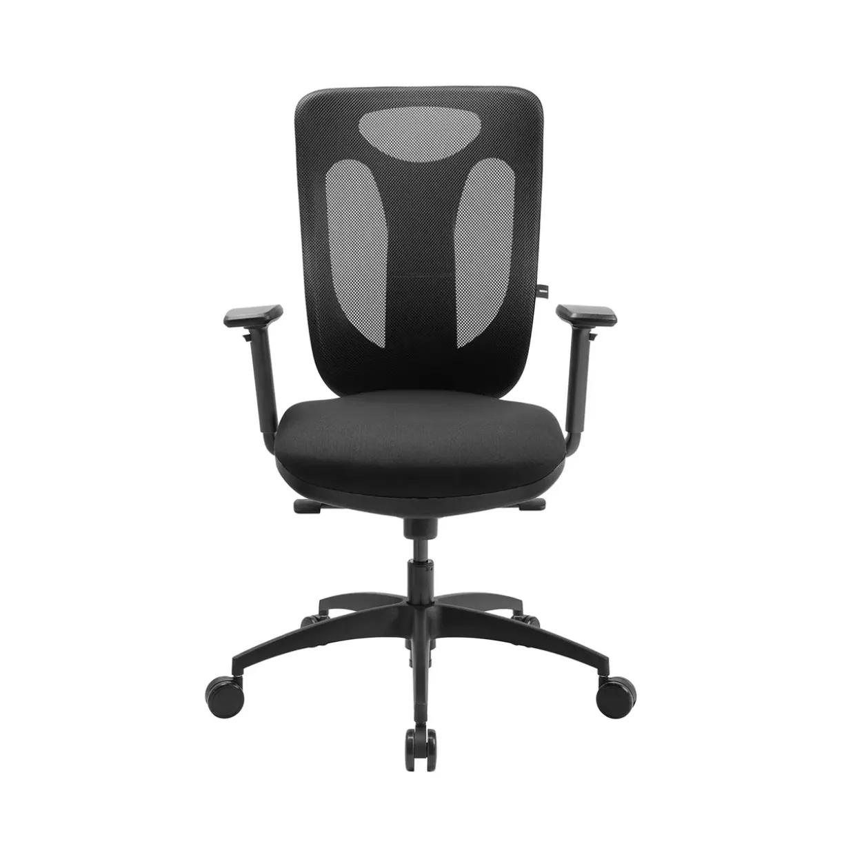 Inklusion der höhenverstellbaren Armlehnen mit Softpadauflage sorgt für besonderen Komfort und Anpassungsfähigkeit. Der moderne Drehstuhl, aus hochwertigem Stoff gefertigt und in elegantem Schwarz gehalten, fügt sich nahtlos in jedes zeitgemäße Arbeitsumfeld ein. Die Rückenlehne, mit atmungsaktivem Netzbezug ausgestattet, bietet nicht nur angenehme Belüftung, sondern lässt sich auch in der Höhe verstellen, um optimalen Halt zu gewährleisten.