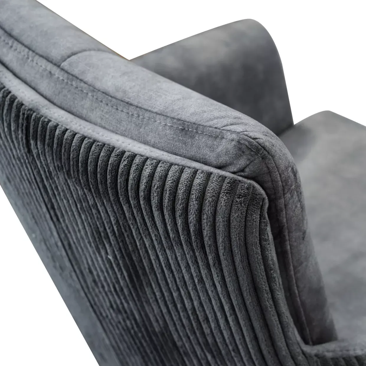 Ein harmonisches Zusammenspiel von Form und Material zeichnet dieses Möbelstück aus. Der hochwertige Stoff, gepaart mit den metallischen Akzenten, verleiht ihm eine edle Erscheinung. Die Kombination aus Samt und Cord sorgt für ein angenehmes Sitzgefühl und setzt stilvolle Akzente in jedem Raum.