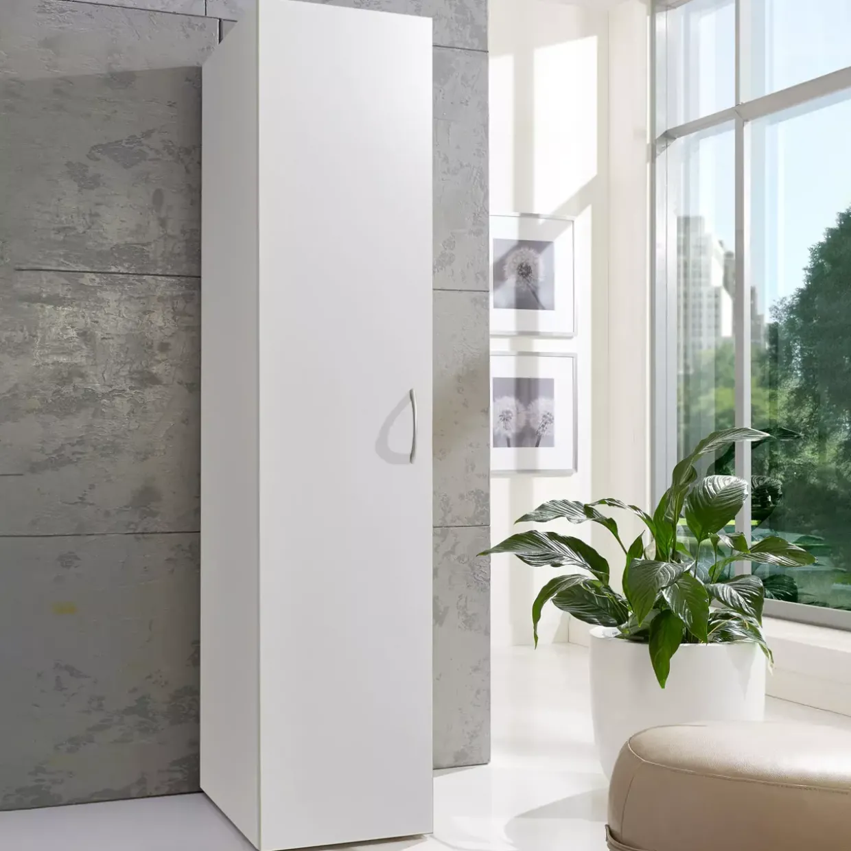 Alpinweiß strahlt eine zeitlose Eleganz aus und bringt in jeden Raum eine freundliche Helligkeit. Das Multiraumkonzept Schrank fügt sich mühelos in ein modernes Ambiente ein und bietet vielseitige Kombinationsmöglichkeiten, die den individuellen Gestaltungsspielraum erweitern. Die klaren Linien und das schlichte Design lassen sich hervorragend mit unterschiedlichen Einrichtungsstilen kombinieren.Die Drehtür des Schranks sorgt nicht nur für eine klassische Optik, sondern auch für eine komfortable Nutzung im Alltag. Durch hochwertige Holzwerkstoffe erhält der Schrank eine robuste und langlebige Struktur, die sowohl funktional als auch ästhetisch ansprechend ist. Die Verarbeitung dieser Materialien gewährleistet eine hohe Qualität und Stabilität, die Sie im täglichen Gebrauch schätzen werden.Vielseitigkeit ist ein weiteres Merkmal, das diesen Schrank auszeichnet. Durch die vielen Kombinationsmöglichkeiten lässt sich der Schrank optimal an Ihre persönlichen Bedürfnisse und den verfügbaren Raum anpassen. Ob im Wohnbereich, Schlafzimmer oder Flur, dieser Schrank bietet eine praktische und stilvolle Lösung für die Aufbewahrung.Insgesamt überzeugt das Multiraumkonzept durch seine durchdachte Gestaltung und die Möglichkeit, die eigene Wohnumgebung flexibel zu gestalten. Lassen Sie sich von der schlichten Eleganz und Funktionalität dieses Schranks inspirieren.