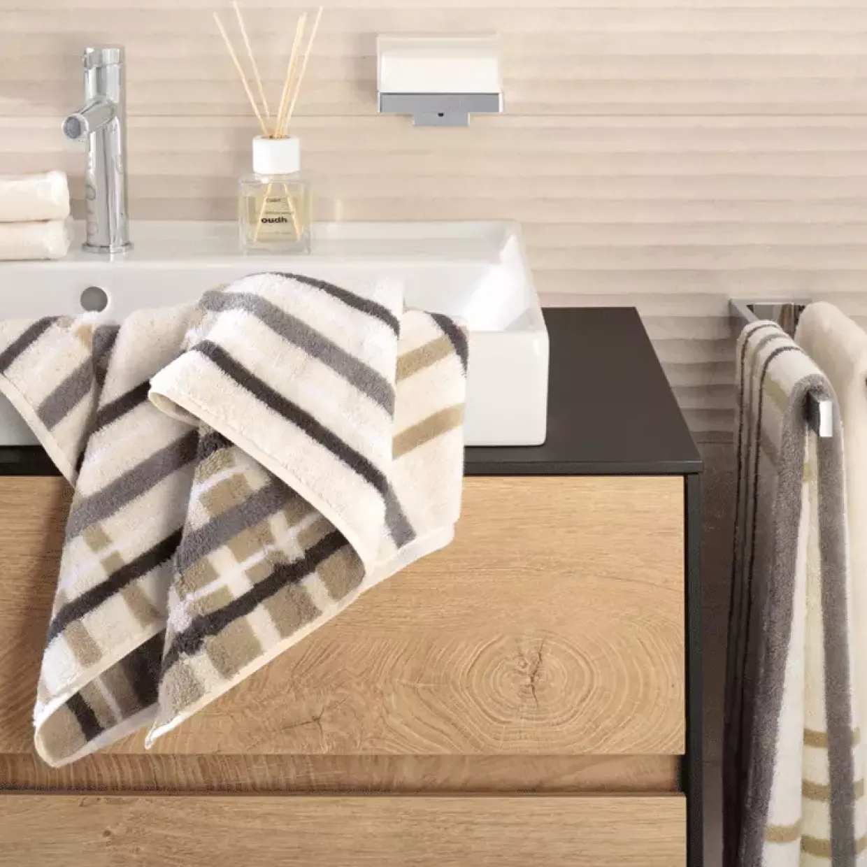 Ein modernes Duschtuch in rechteckiger Form erwartet Sie, das sowohl im Design als auch in der Funktionalität überzeugt. Die natürliche Farbgebung harmoniert wunderbar mit jeder Badezimmereinrichtung und verleiht Ihrem Raum eine zeitlose Eleganz. Hergestellt aus hochwertigem Frottee, bietet dieser Begleiter ein angenehm weiches Gefühl auf der Haut und überzeugt durch seine hohe Saugfähigkeit.Dank der Verwendung von Naturfasern ist das Duschtuch umweltfreundlich und nachhaltig. Mit dem Ökotex – Standard 100 Zertifikat ausgezeichnet, können Sie sich sicher sein, dass dieses Produkt frei von schädlichen Substanzen ist und höchsten Sicherheitsstandards entspricht.Ganzjährig einsetzbar, fügt sich das Duschtuch ideal in Ihren Alltag ein. Pflegeleicht gestaltet, kann es problemlos bei bis zu 60°C in der Maschine gewaschen werden. Ein weiterer Pluspunkt ist die Eignung für den Trockner bei niedriger Temperatur, was den Pflegeaufwand erheblich reduziert. Auf das Bügeln und Bleichen kann verzichtet werden, und für Fälle, in denen eine chemische Reinigung erforderlich ist, ist dies ebenfalls möglich.Ein Duschtuch, das Ästhetik und Funktionalität in einem Produkt vereint, und Ihren täglichen Wohlfühlmoment nach dem Duschen bereichert. Lassen Sie sich von der Qualität und Langlebigkeit überzeugen.