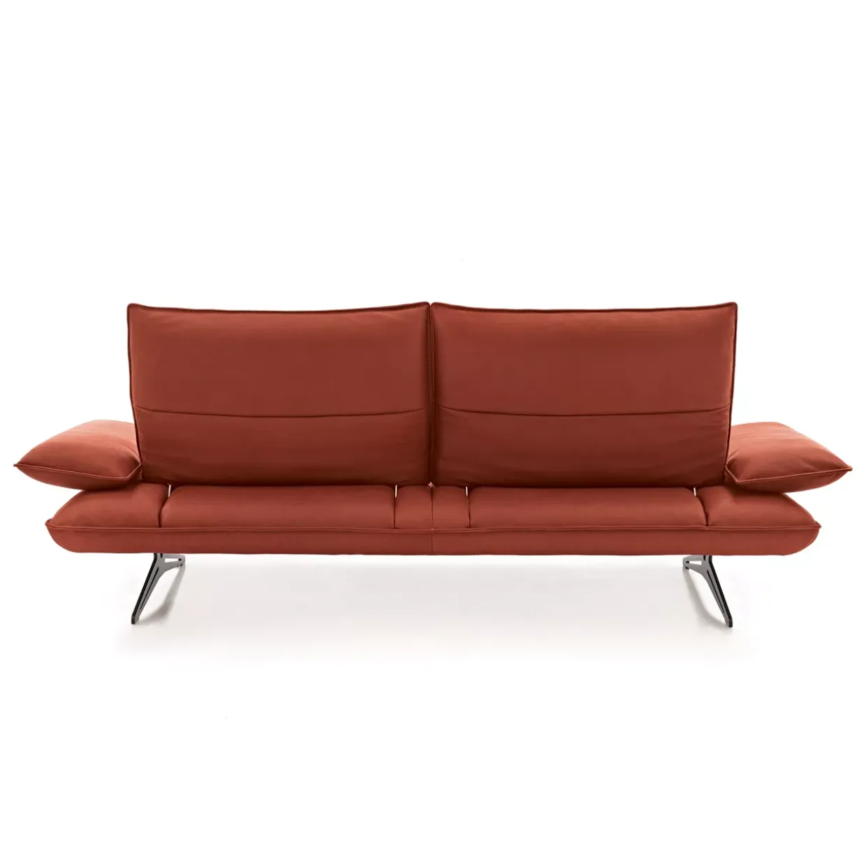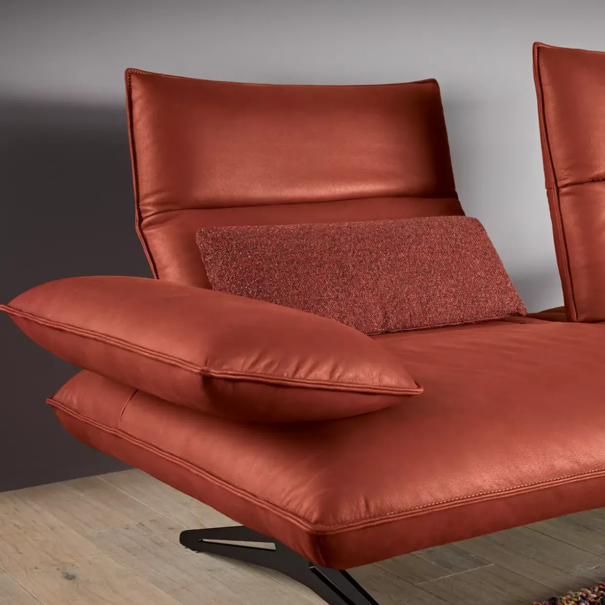 Ausziehbar bis zu beeindruckenden 138 cm, die Polstergarnitur Caio vereint modernes Design mit Funktionalität. In einem harmonischen Zusammenspiel aus Leder und Metall präsentiert sich dieses Möbelstück in der Farbe India Chilli. Der Kontrastfaden in Beige und die Struktur in Schwarz matt schaffen eine elegante und zeitlose Ästhetik.