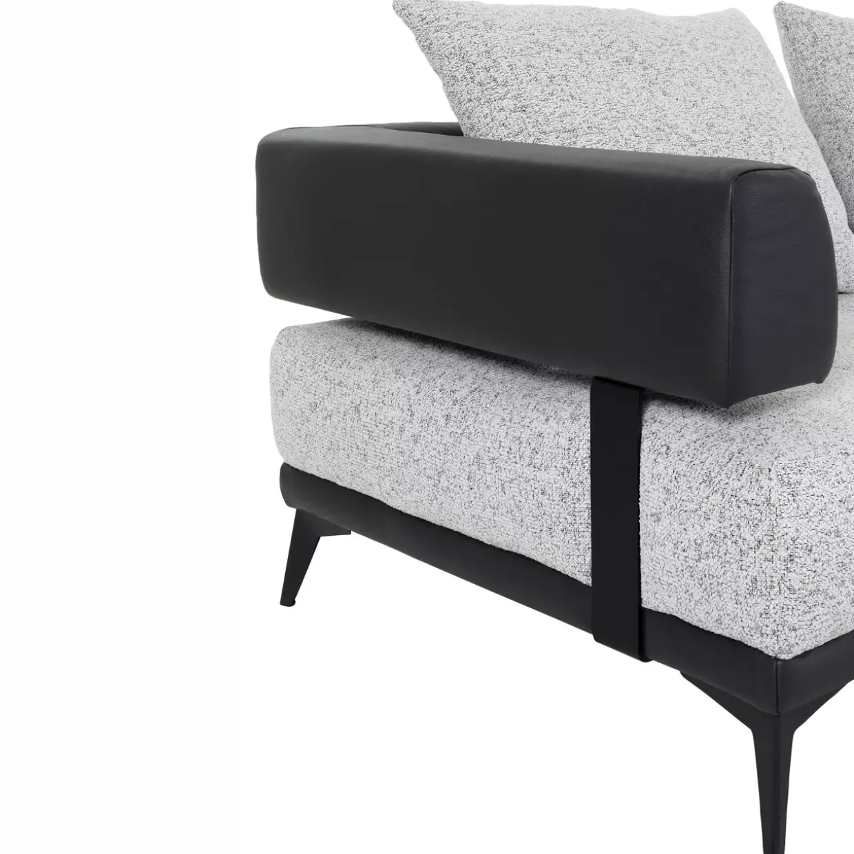 In einem modernen Stil gehalten, vereint das Conville Ecksofa mit Ottomane zeitlose Eleganz und praktischen Komfort. Die harmonische Farbpalette in dunkelgrauen und hellgrauen Dessins sowie klassischem Schwarz verleiht jedem Wohnraum eine stilvolle Atmosphäre. Vielseitigkeit und Robustheit bietet das Zusammenspiel aus Stoff, Holz und Metall, was dem Ecksofa eine stabile und langlebige Struktur verleiht.