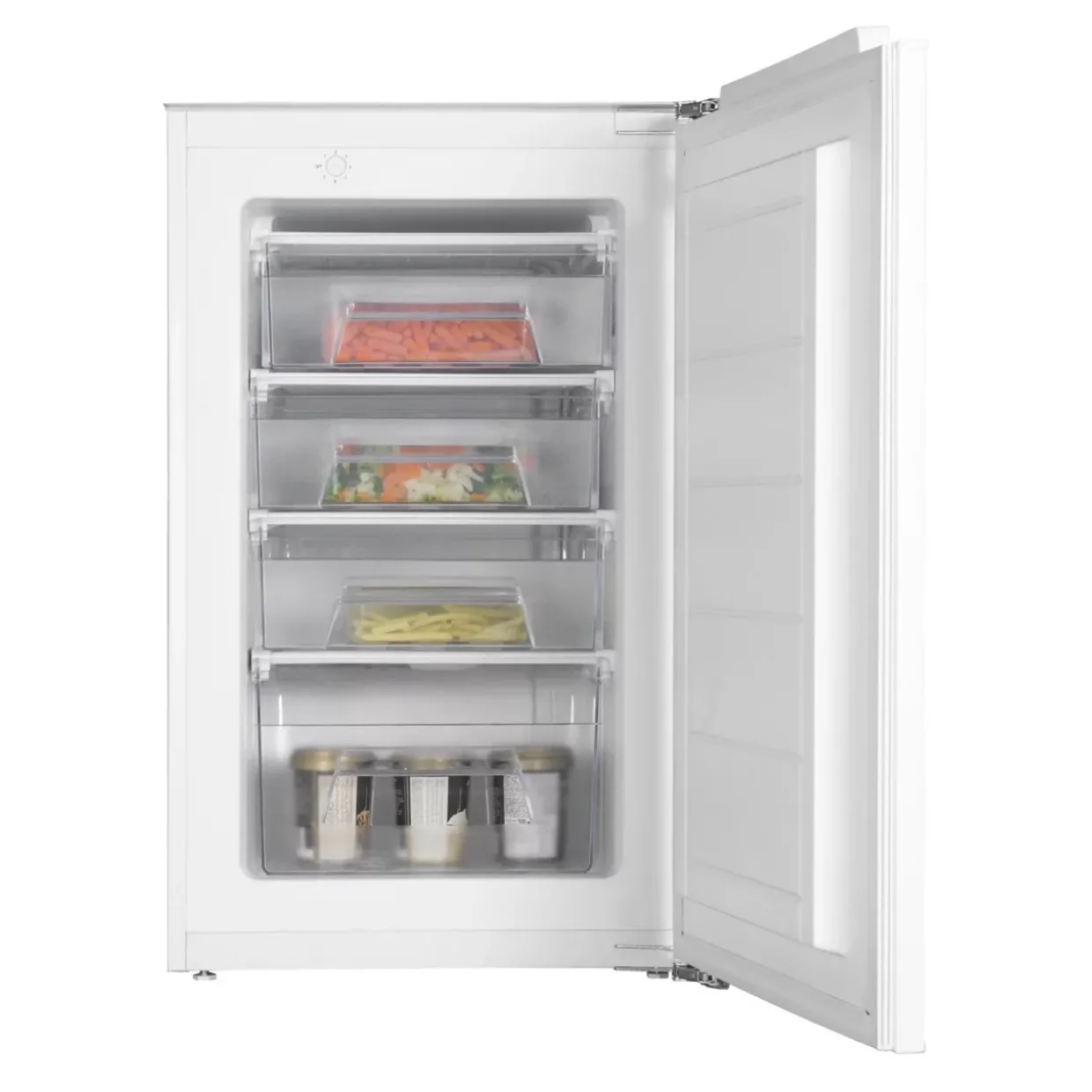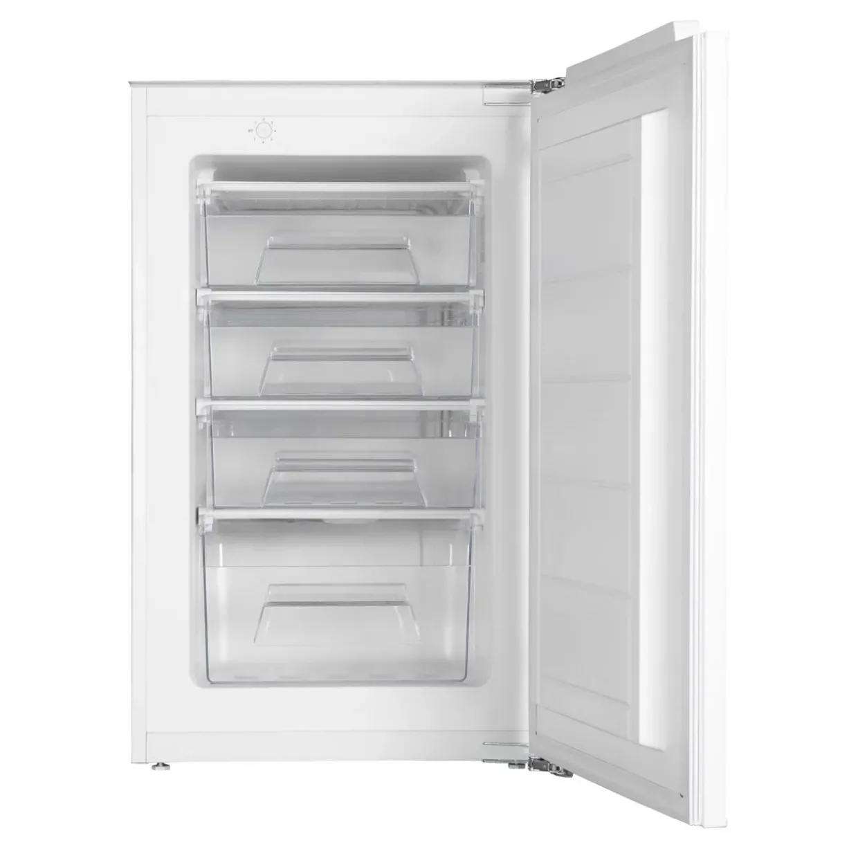 Der moderne Einbau-Gefrierschrank in stilvollem Design überzeugt mit einer beeindruckenden Füllmenge von 77 Litern. Die Kombination aus hochwertigem Kunststoff und langlebigem Metall sorgt für eine robuste und zugleich elegante Erscheinung. Praktische Highlights wie die vier Gefrierschubladen und die integrierte Eiswürfelablage bieten optimalen Stauraum für Ihre Tiefkühlwaren und sorgen für eine durchdachte Organisation.