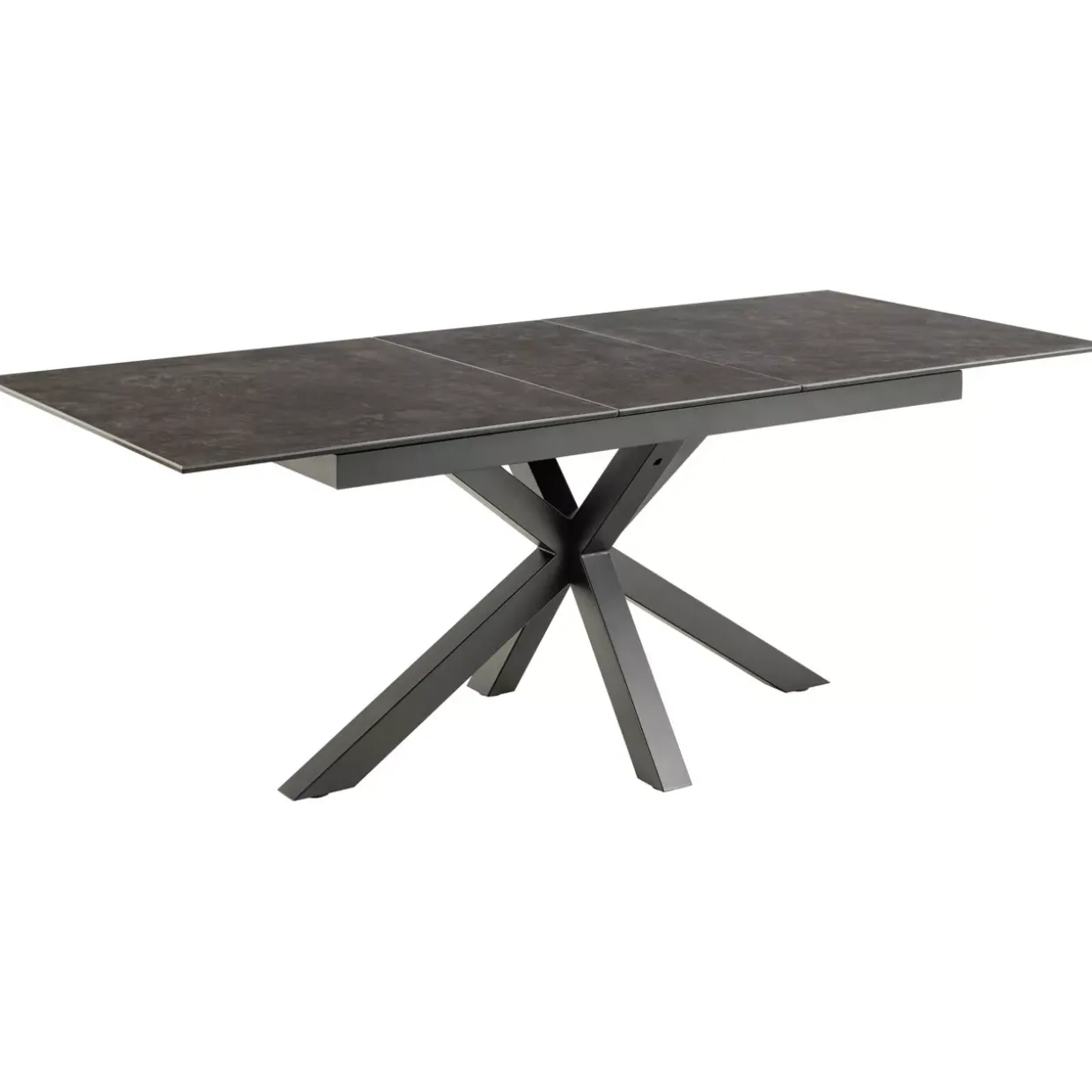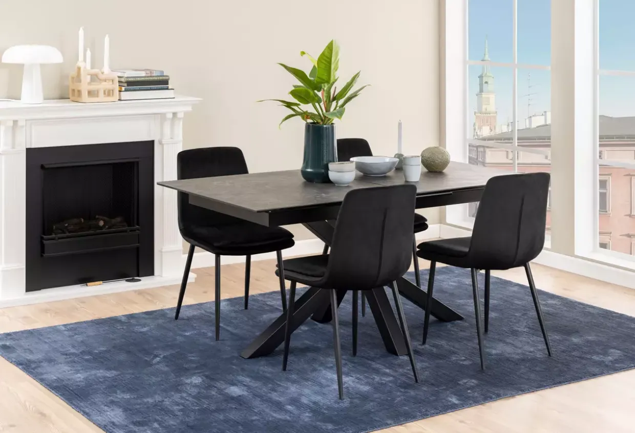 Der Kreuzfuß des Tisches sorgt für Stabilität und verleiht ihm eine markante Optik, die sowohl in klassischen als auch in modernen Einrichtungen harmoniert. In mattem Schwarz gehalten, fügt sich der Tisch nahtlos in unterschiedlichste Farbkonzepte ein und unterstreicht den modernen Stil.