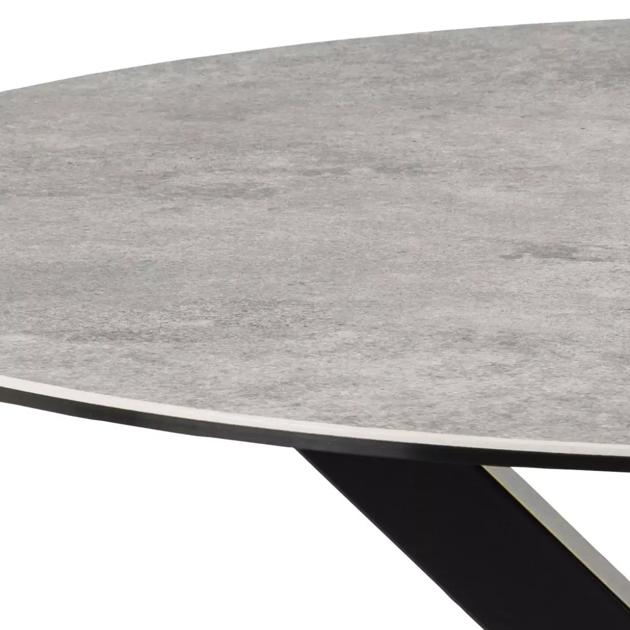Der Kreuzfuß aus Metall sorgt nicht nur für Stabilität, sondern auch für einen markanten Look, der Blicke auf sich zieht. Keramik als Material der Tischplatte bietet nicht nur optische Vorzüge, sondern ist auch besonders pflegeleicht und widerstandsfähig gegen Kratzer und Hitze.