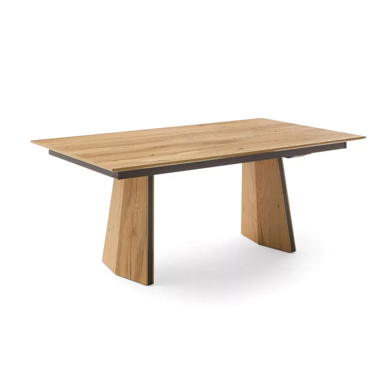 Die feste Platte ohne Zarge verleiht dem Tisch eine klare, moderne Linie, die sich nahtlos in unterschiedlichste Einrichtungsstile einfügt. Sepia matt bildet einen harmonischen Kontrast zur hellen Eichenoberfläche und unterstreicht die natürliche Maserung des Holzes. Diese Farbkombination schafft eine beruhigende Atmosphäre, die zum Verweilen einlädt.