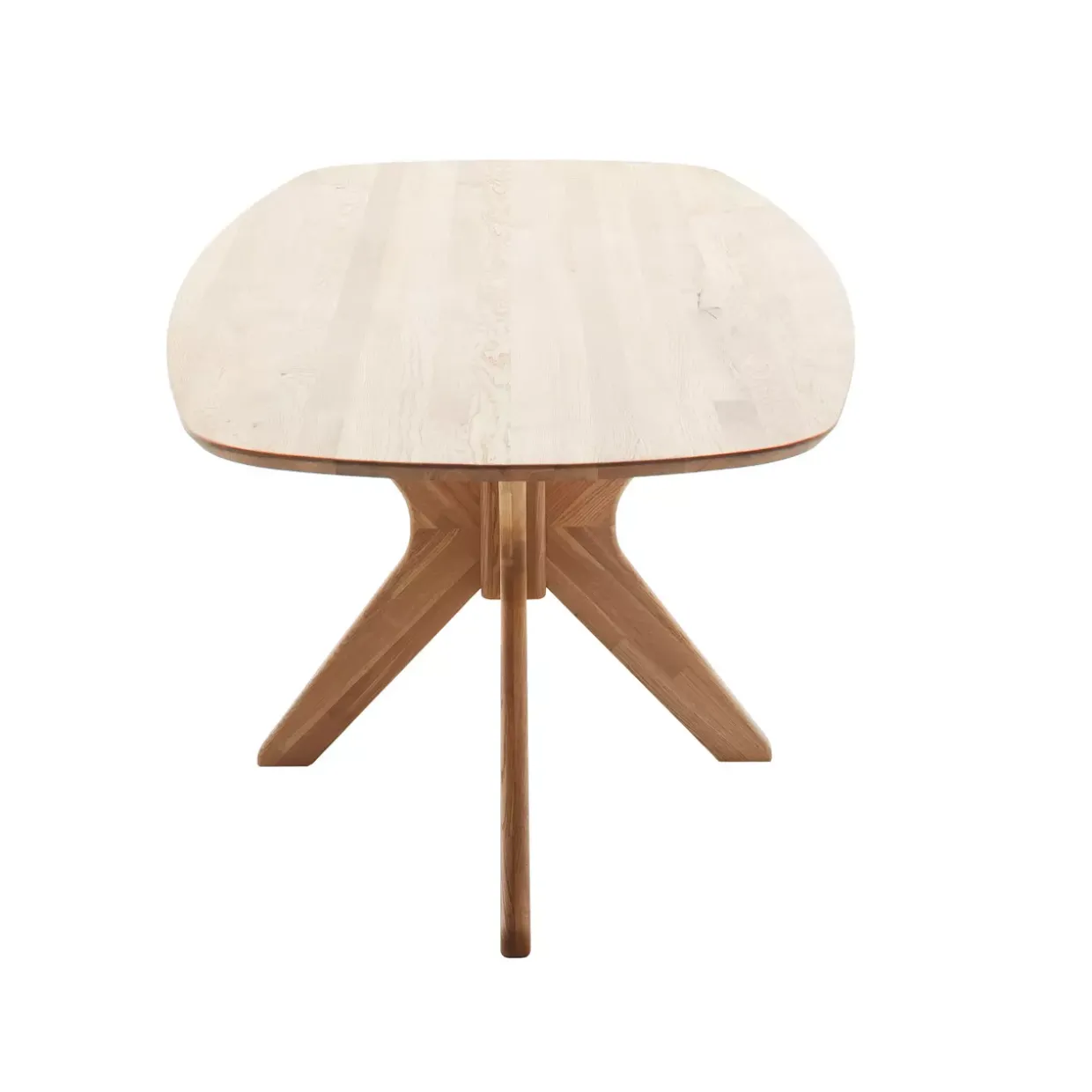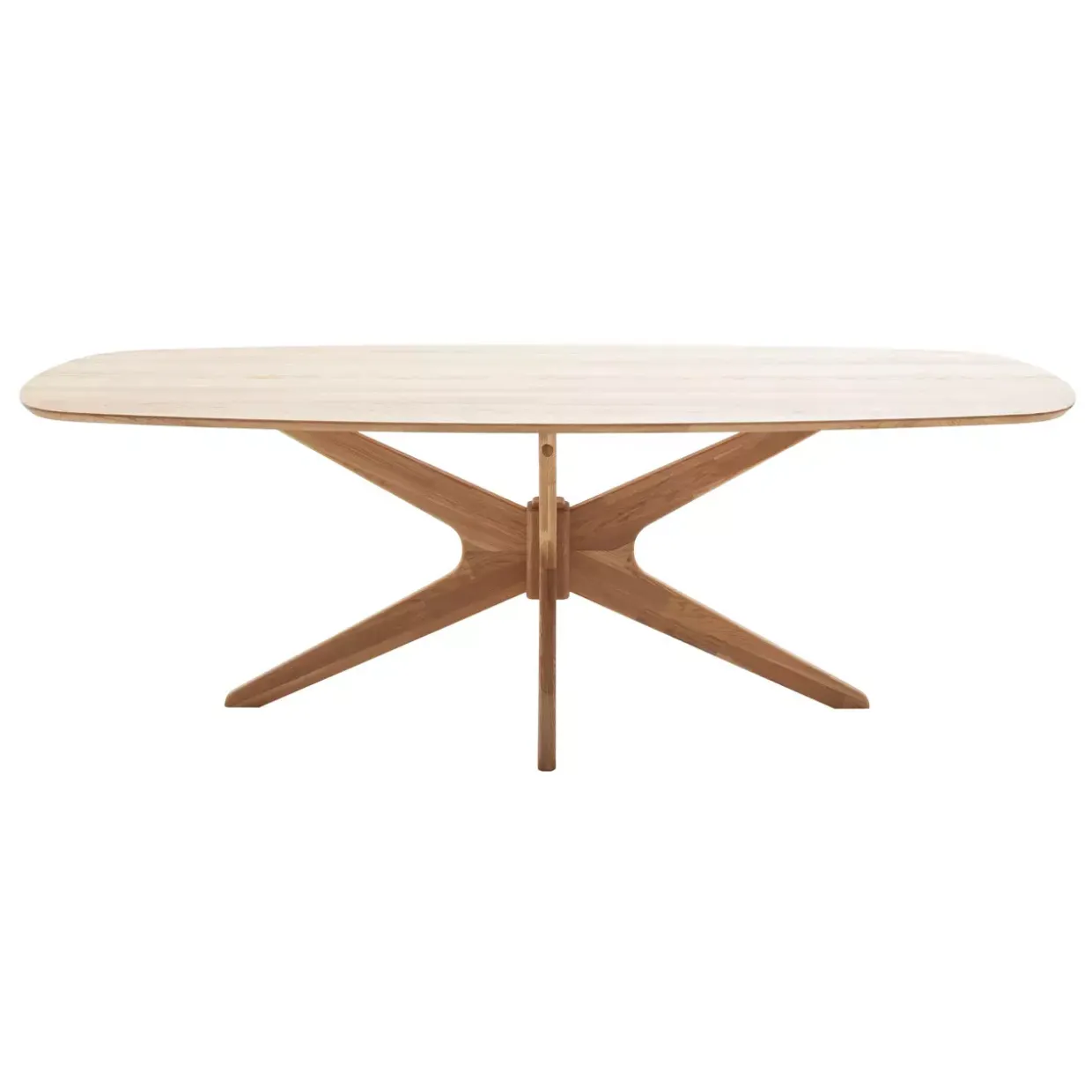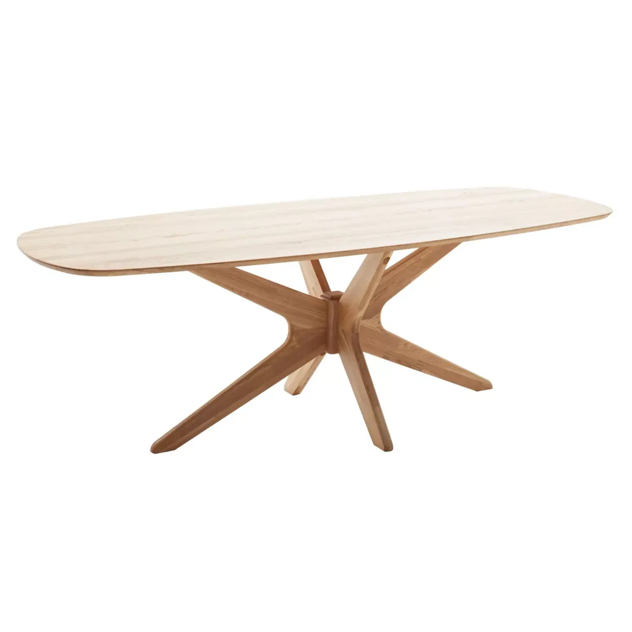 Robuste Eiche, ein Material, das für seine Langlebigkeit und Widerstandsfähigkeit bekannt ist, bildet die Basis dieses Möbels. Die geölte Oberfläche sorgt dabei nicht nur für einen natürlichen Glanz, sondern auch für einen effektiven Schutz des Holzes. Das markante Spider-Gestell verleiht dem Tisch Stabilität und eine durchdachte, ästhetische Struktur.