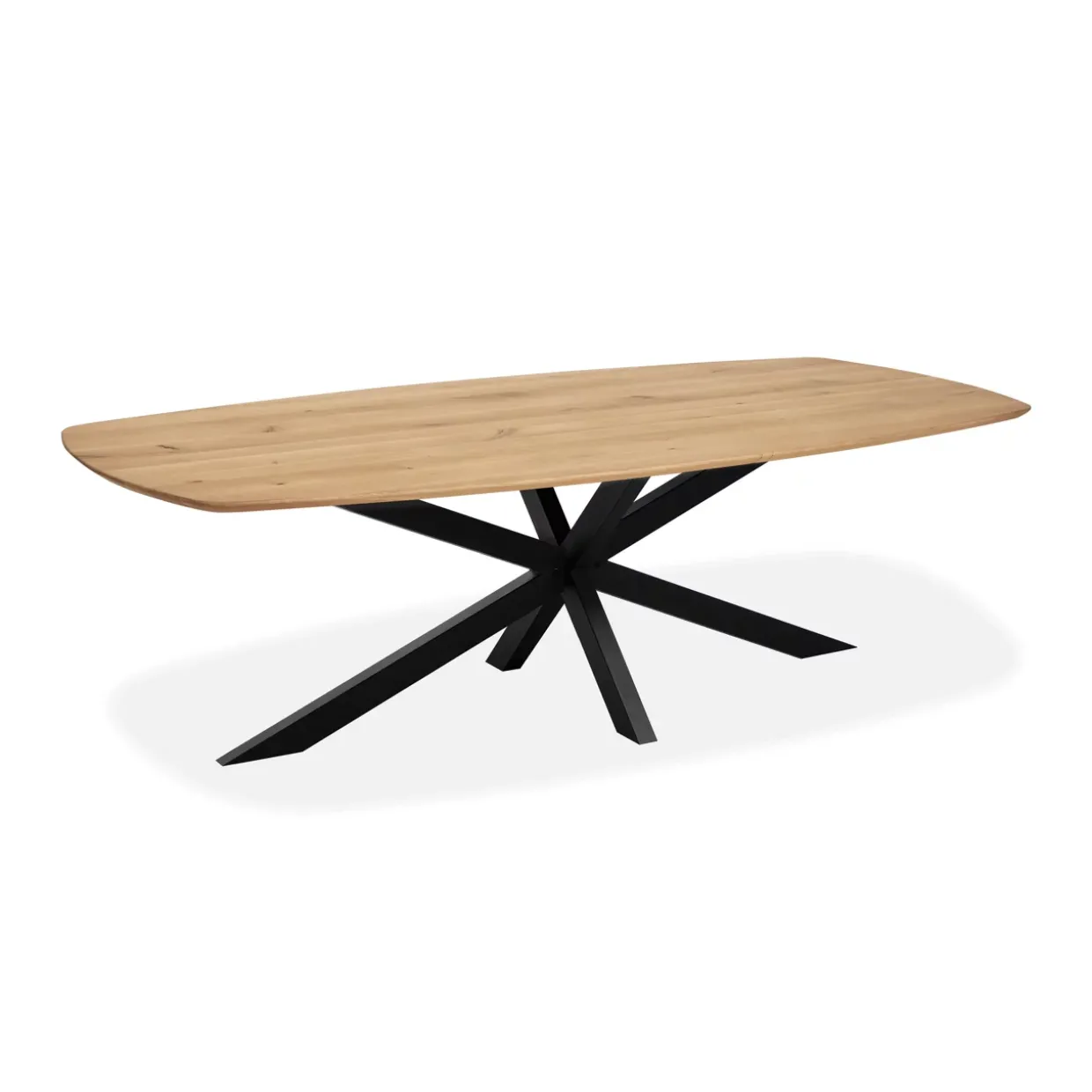 Dänisch oval geformt präsentiert sich der Esstisch Nottingham-1 als stilvolles Zentrum Ihres Speisebereichs. Das Design im Loft-Stil vereint klare Linien mit einem Hauch von Eleganz und schafft damit eine harmonische Atmosphäre. Die Kombination aus schwarzem Holzwerkstoff und massivem Eichenholz sorgt für einen ansprechenden Kontrast, der sowohl modern als auch zeitlos wirkt.Besonders markant ist das Spider-Gestell, das dem Tisch nicht nur Stabilität verleiht, sondern auch ein ästhetisches Highlight setzt. Die sorgfältig ausgewählten Materialien garantieren Langlebigkeit und Robustheit, während sie gleichzeitig den natürlichen Charme des Holzes betonen.Ideal für gesellige Runden oder festliche Anlässe, bietet dieser Esstisch ausreichend Platz und Komfort. Die Verarbeitung und die Materialwahl sprechen für eine hohe Qualität, die in jedem Detail spürbar ist. Der Nottingham-1 Esstisch ist nicht nur ein Möbelstück, sondern ein Ausdruck von Stilbewusstsein und Geschmack.Für Liebhaber des skandinavischen Designs ist dieser Tisch eine Bereicherung, die Funktionalität mit einer warmen, einladenden Ästhetik vereint. Lassen Sie sich von der Kunstfertigkeit und dem Design inspirieren und schaffen Sie einen Raum, der zum Verweilen und Genießen einlädt.