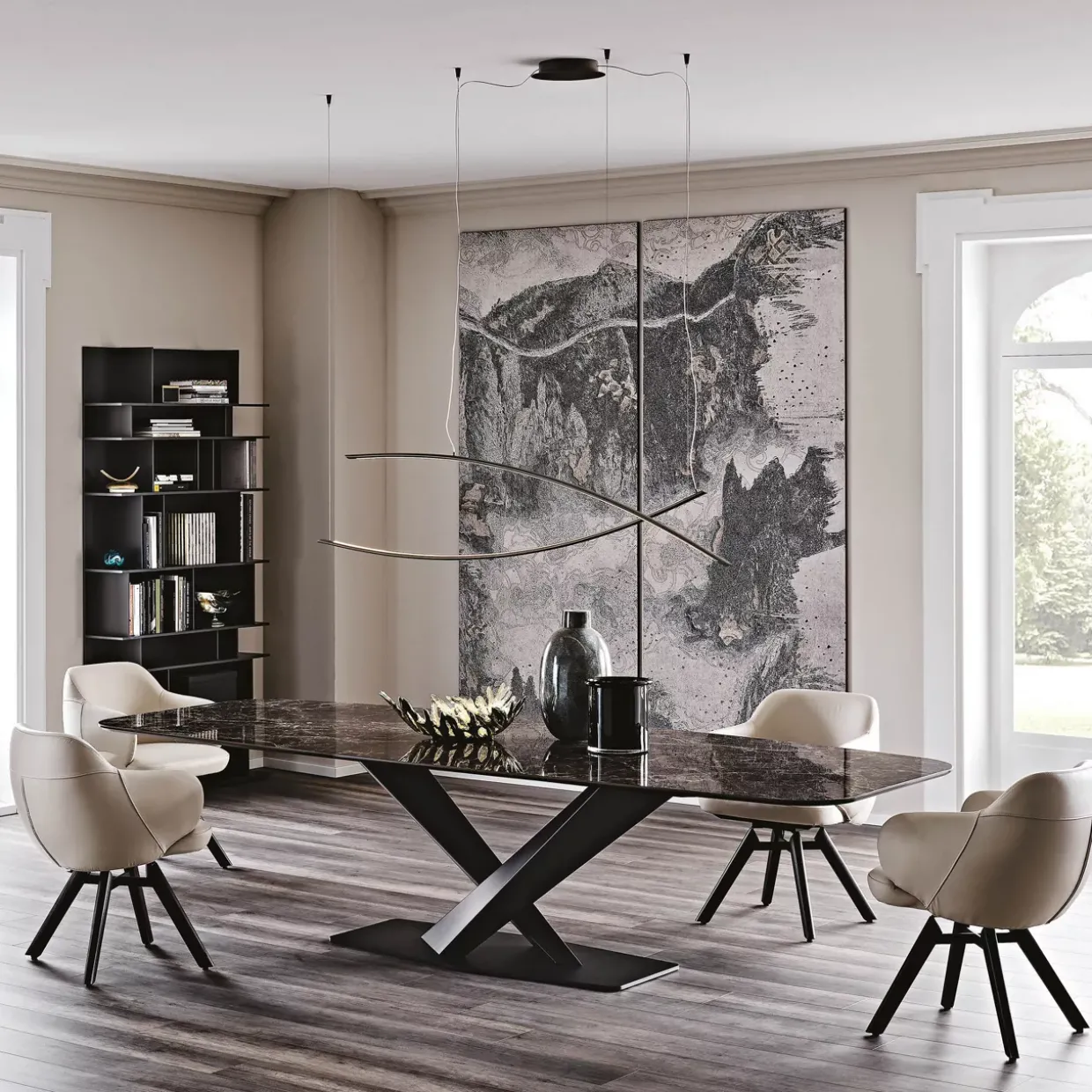 Ein Hauch von Moderne: Der Stratos Esstisch beeindruckt durch seinen zeitgenössischen Stil, der sich nahtlos in jedes moderne Ambiente einfügt. Mit einer eleganten Kombination aus Metall und Keramik schafft er eine Atmosphäre, die sowohl stilvoll als auch funktional ist. Die Tischplatte aus hochwertiger Keramik bietet nicht nur eine ansprechende Optik, sondern ist auch besonders pflegeleicht und langlebig.