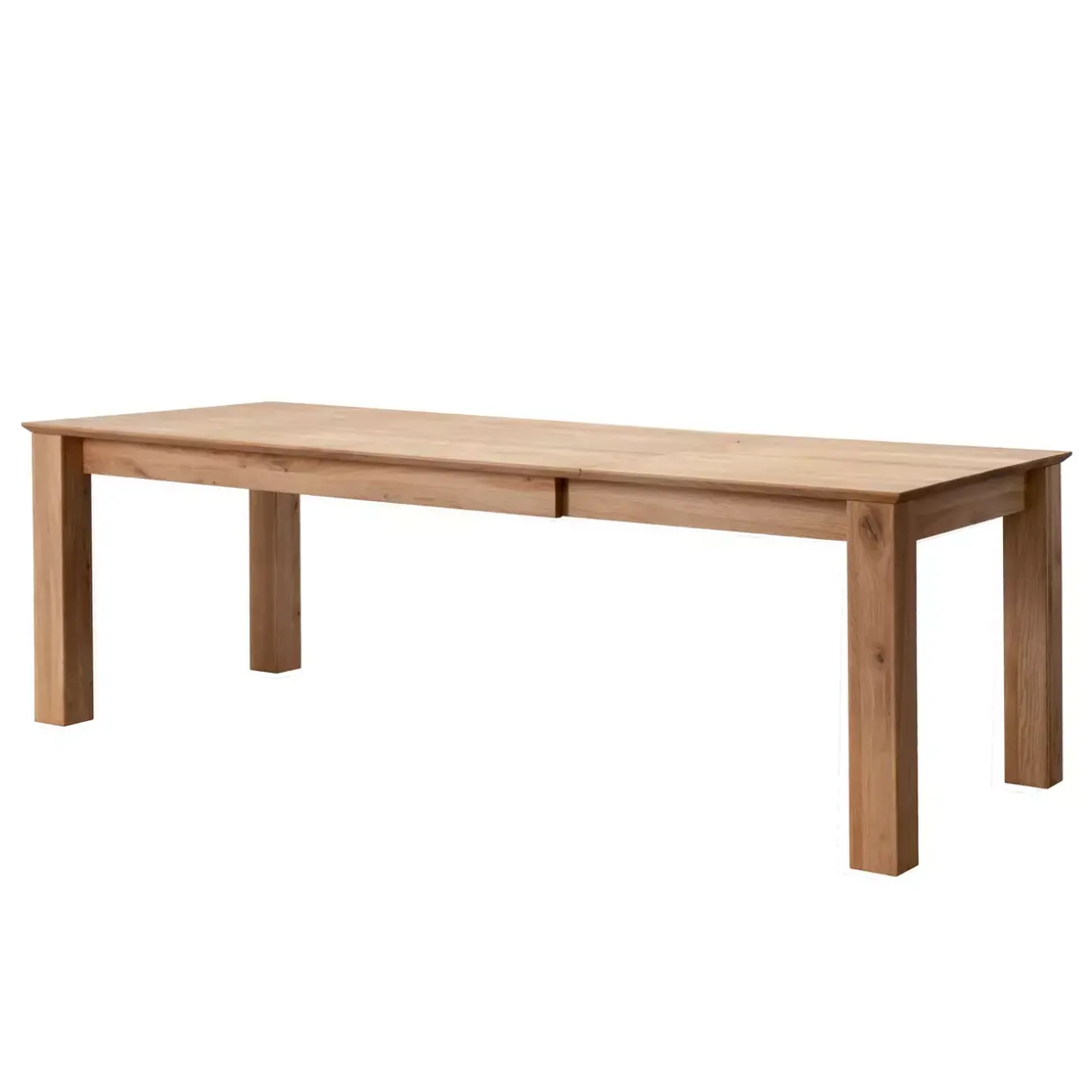 Die beeindruckende Ausziehbarkeit dieses Esstisches ist ein wahres Highlight für jedes Zuhause. Der rechteckige Tisch im konventionellen Stil bietet die Möglichkeit, seine Länge auf bis zu 280 cm zu erweitern. Zwei praktische Klappeinlagen von jeweils 50 cm machen dies möglich. Das massive Wildeichenholz verleiht dem Tisch nicht nur Stabilität, sondern auch eine natürliche und warme Ausstrahlung.