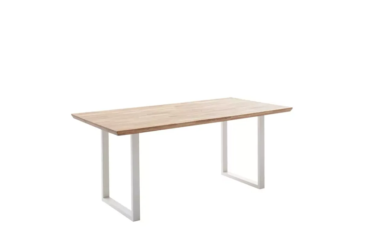 Der Tiana Esstisch überzeugt durch seine zeitlose Eleganz und natürliche Ausstrahlung. Mit der Kombination aus weißem Metall und massivem Eichenholz in zerreichter keilgezinkter Optik wird eine harmonische Balance zwischen Moderne und Tradition geschaffen. Die Oberfläche des Tisches ist sorgfältig geölt, was die natürliche Holzmaserung betont und gleichzeitig einen effektiven Schutz bietet.
