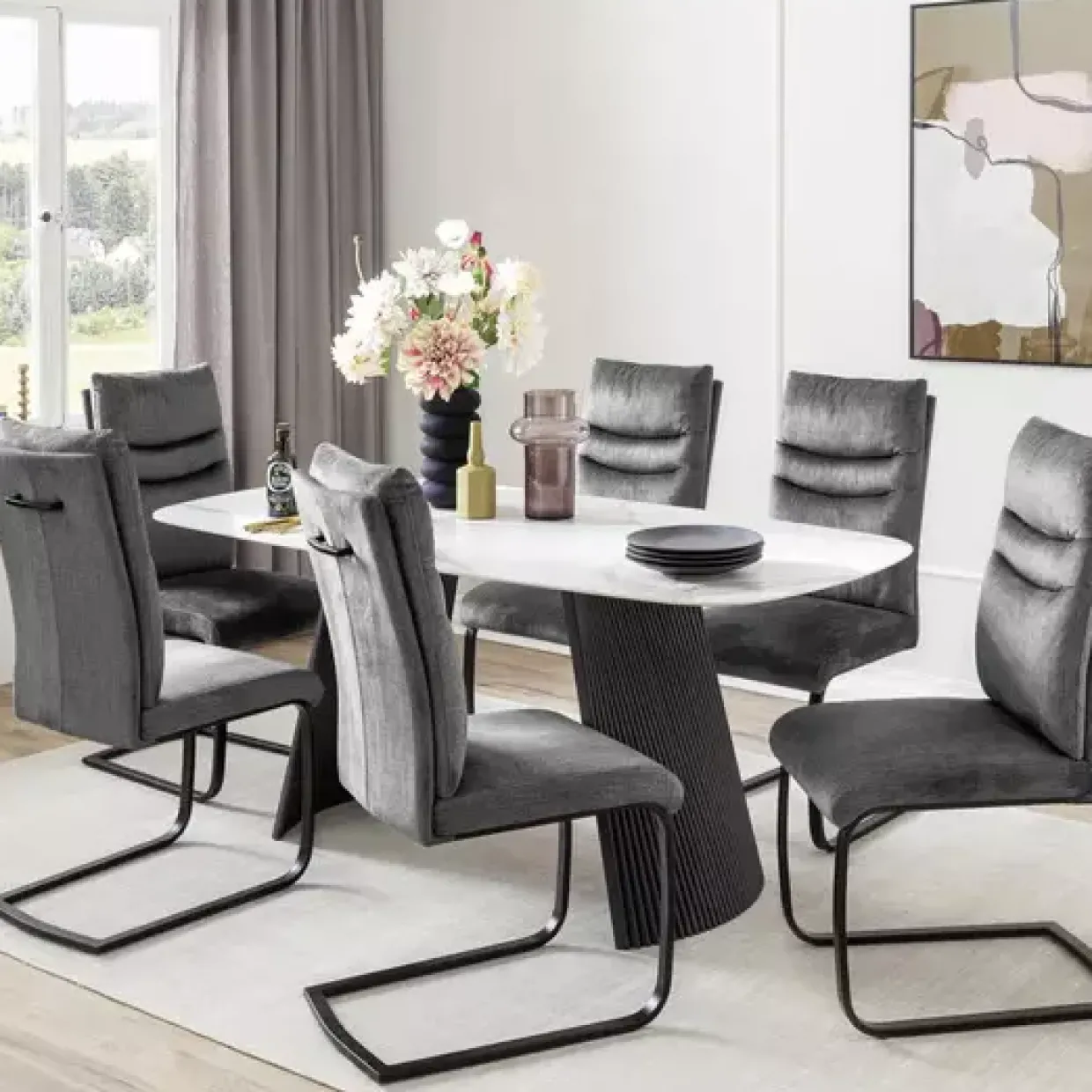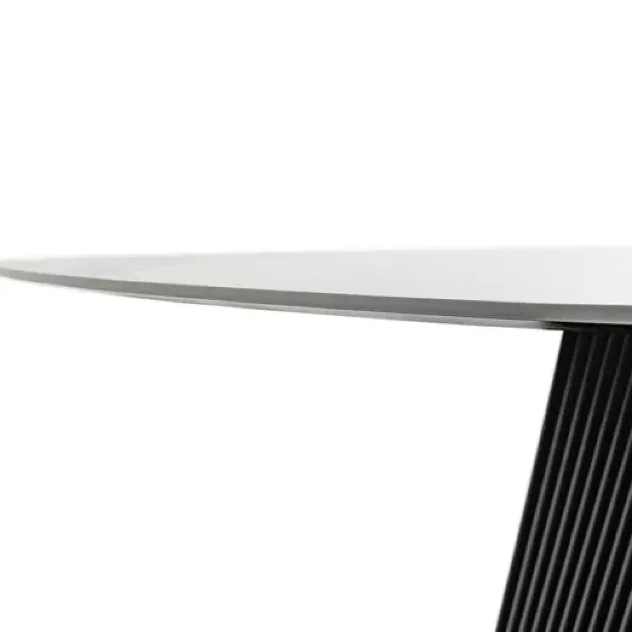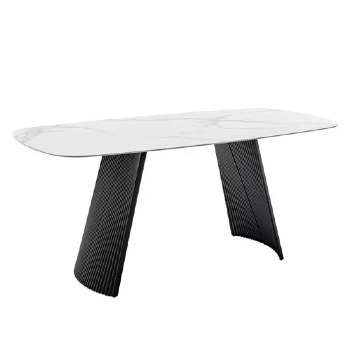 Schwarz matt lackiert und weiß marmoriert – eine faszinierende Farbkomposition, die den Tobelo Esstisch zu einem wahren Blickfang in jedem modernen Wohnbereich macht. Das Zusammenspiel von kühlem Metall und eleganter Keramik vereint Robustheit mit stilvoller Ästhetik und schafft einen einzigartigen Ort für gesellige Runden und kulinarische Erlebnisse.Der Tobelo Esstisch überzeugt nicht nur durch seine optischen Reize. Die hochwertige Verarbeitung der Materialien verspricht Langlebigkeit und Stabilität, sodass er den Anforderungen des Alltags problemlos standhält. Die Kombination aus modernem Design und funktionaler Qualität macht diesen Tisch zu einem idealen Begleiter für jedes Zuhause, das Wert auf zeitgemäße Einrichtung legt.Eine harmonische Ergänzung für die verschiedensten Wohnstile, fügt sich der Tobelo Esstisch nahtlos in unterschiedliche Raumkonzepte ein. Ob als zentrales Element im Esszimmer oder als stilvolle Ergänzung im offenen Wohnbereich – seine Präsenz ist unverkennbar und einladend. Lassen Sie sich von der klaren Linienführung und den ästhetischen Details inspirieren, die diesen Esstisch zu einem unverzichtbaren Bestandteil moderner Wohnkultur machen. Ein Möbelstück, das nicht nur durch seine Funktionalität, sondern auch durch seine zeitlose Eleganz überzeugt.