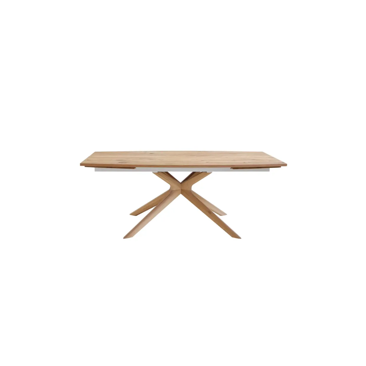 Ein besonderes Merkmal des Tisches ist das Stativgestell, das nicht nur für Stabilität sorgt, sondern auch einen stilvollen Akzent setzt. Sollten Sie zusätzlichen Platz benötigen, bietet sich die Möglichkeit, den Tisch bei Bedarf durch eine Tischverlängerung zu erweitern. Diese Option ist auf Anfrage und gegen Mehrpreis erhältlich, was Ihnen maximale Flexibilität bei der Raumgestaltung ermöglicht.