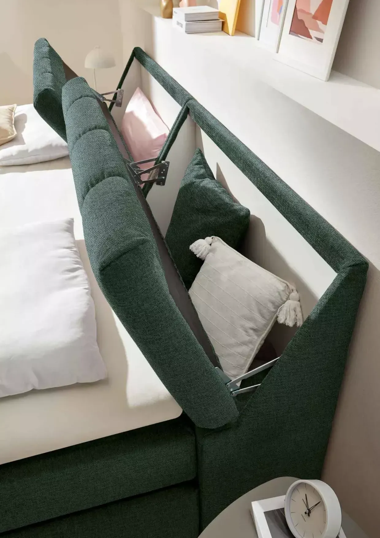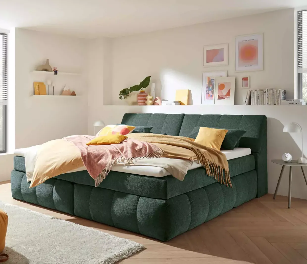 Eden Wintermoss als Farbton verleiht der modernen Bearford-Familie eine elegante Note, die sich nahtlos in jedes Interieur einfügt. Polyester als Textilart sorgt für eine robuste und pflegeleichte Oberfläche, die lange Freude bereitet. Der integrierte Stauraum im Kopfteil bietet praktischen Platz für Ihre persönlichen Gegenstände und hält Ihr Schlafzimmer aufgeräumt. Ein besonderes Highlight ist der HR 30-Topper, der mit einer Dicke von 6 cm für zusätzlichen Komfort sorgt. Der Bezug ist pflegeleicht und kann bei bis zu 40 Grad gewaschen werden, was für eine angenehme Frische sorgt. Die Obermatratze mit ihrem 7-Zonen-Tonnentaschenfederkern garantiert eine optimale Unterstützung Ihres Körpers während des Schlafs und fördert so einen erholsamen Schlaf. Das stabile Gestell aus Holzwerkstoffen und die Kunststofffüße verleihen der Box eine solide Basis. Der 4-Gang-Bonell-Federkern bietet in Kombination mit einer Schaumschicht zusätzlichen Komfort und Halt. Diese durchdachte Kombination von Materialien und Funktionen macht die Bearford-Familie zu einem idealen Begleiter für ein modernes Schlafzimmer, das sowohl stilvoll als auch funktional ist. Erleben Sie, wie die Bearford-Familie Komfort und Stil vereint und Ihrem Raum eine besondere Atmosphäre verleiht.
