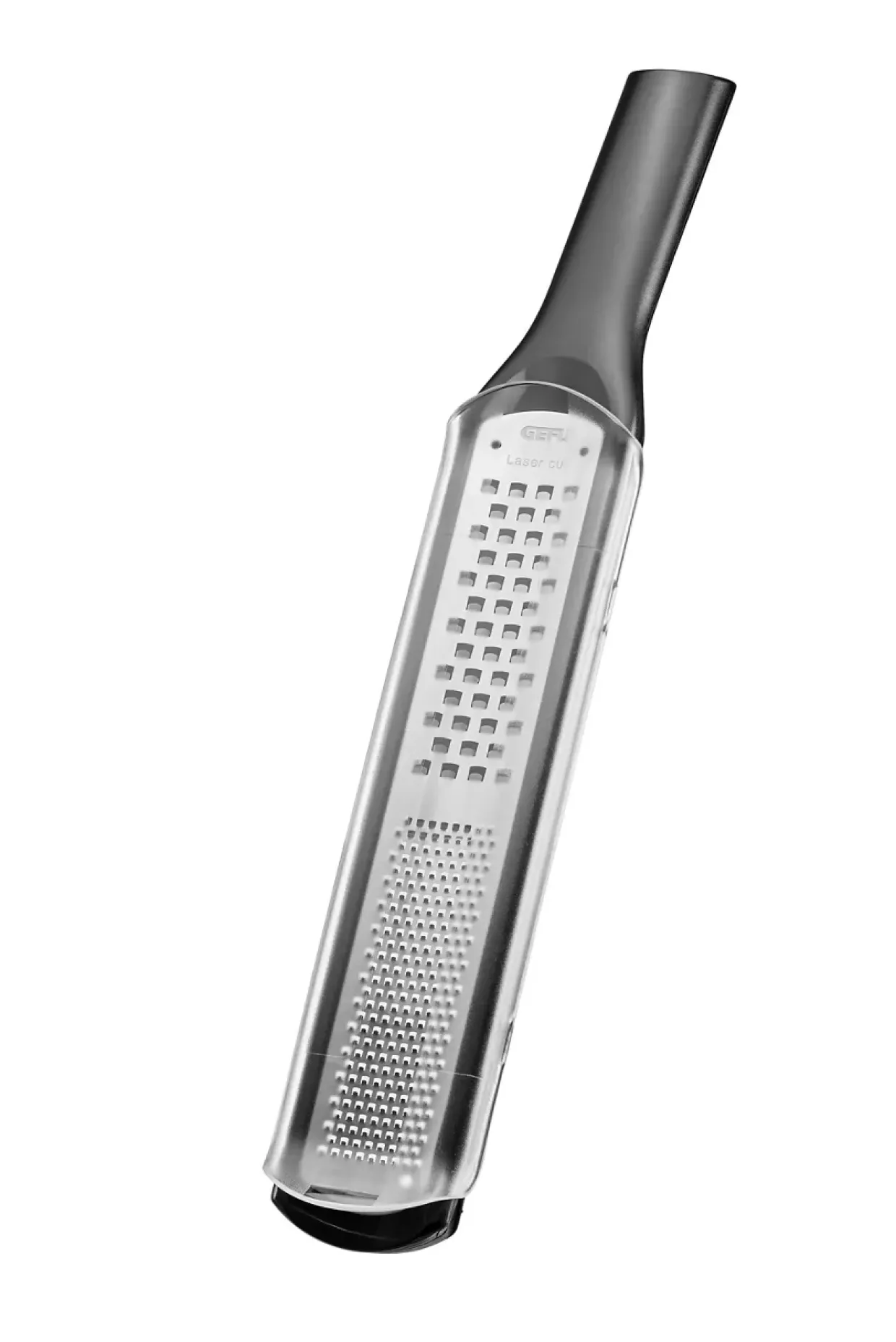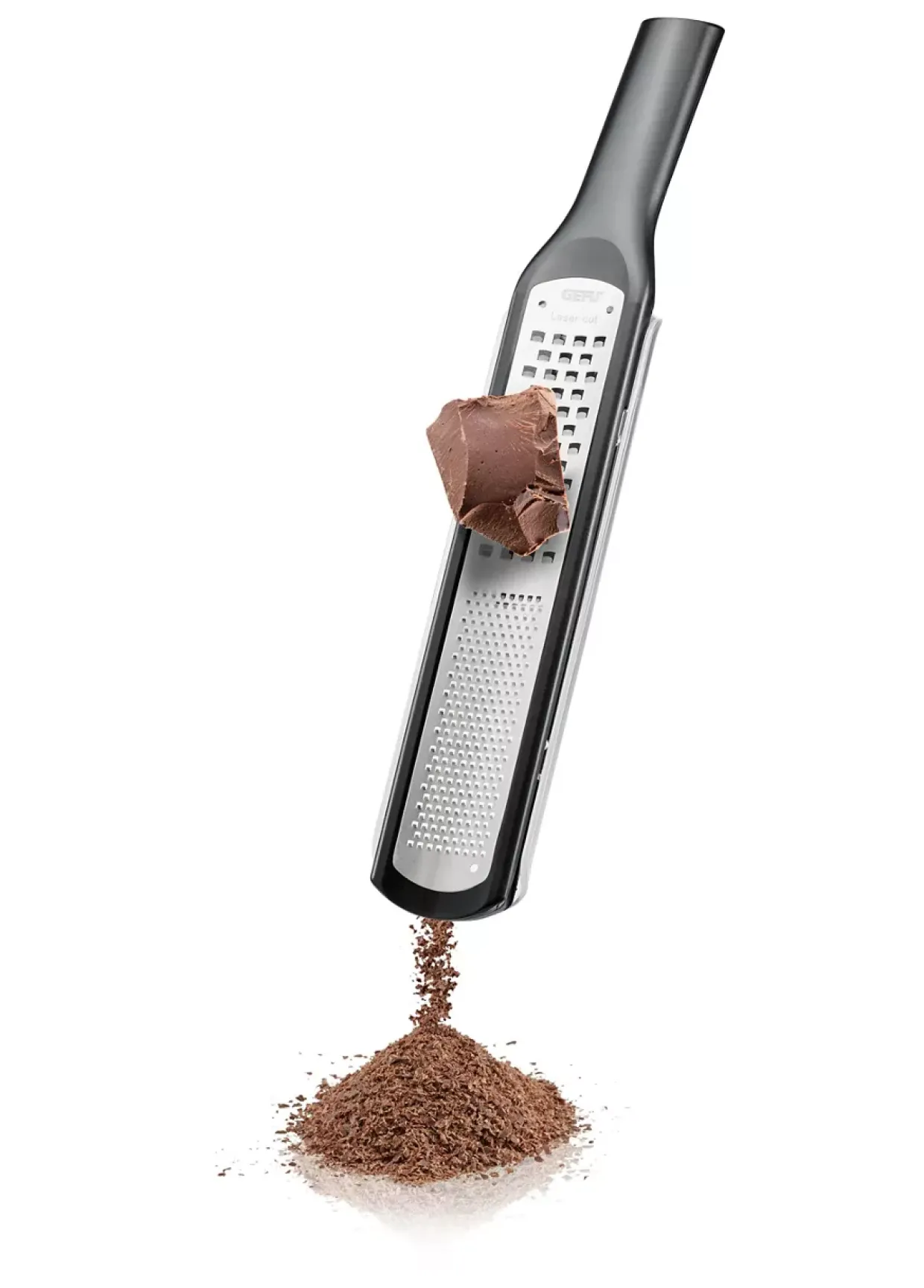 Die extrem scharfen LASER CUT Klingen zeichnen die Feinreibe Rafino aus und garantieren müheloses Reiben für feinste Ergebnisse. Ob Parmesan, Ingwer, Schokolade oder Zitronenschale – diese Allzweckreibe meistert jede Herausforderung. Der Edelstahl sorgt für Langlebigkeit und das stilvolle Design in Schwarz und Silber fügt sich nahtlos in jede Küche ein.