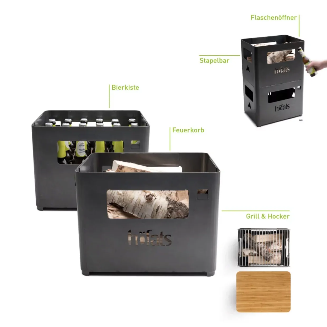 Der integrierte Flaschenöffner macht die Beer Box zu einem praktischen Begleiter für gesellige Anlässe. Diese moderne Feuerkorb-Variante vereint Funktionalität und Stil und ist in den edlen Farben Dunkelgrau und Anthrazit erhältlich. Gefertigt aus robustem Stahl, bietet sie nicht nur Langlebigkeit, sondern auch ein ansprechendes Design.