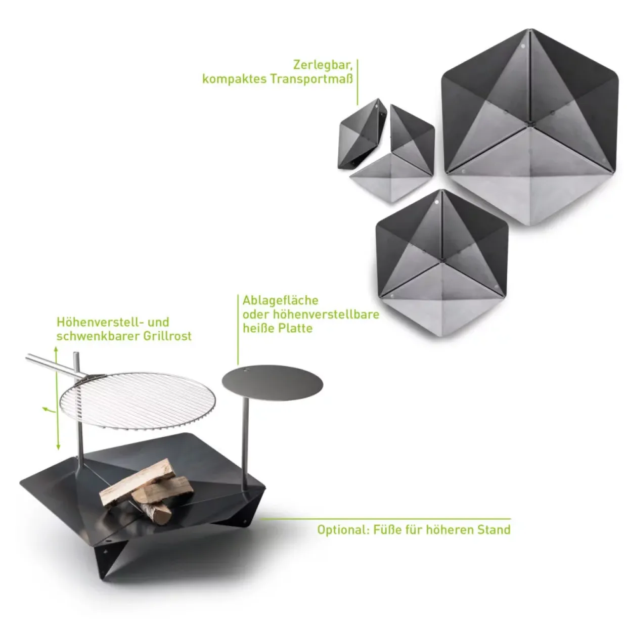 Modernes Design trifft auf robustes Material. Das Modell Triple besteht aus hochwertigem Stahl, der nicht nur für seine Langlebigkeit, sondern auch für seine Stabilität bekannt ist. Diese Eigenschaften machen die Feuerschale zu einem idealen Begleiter für gesellige Abende im Freien.